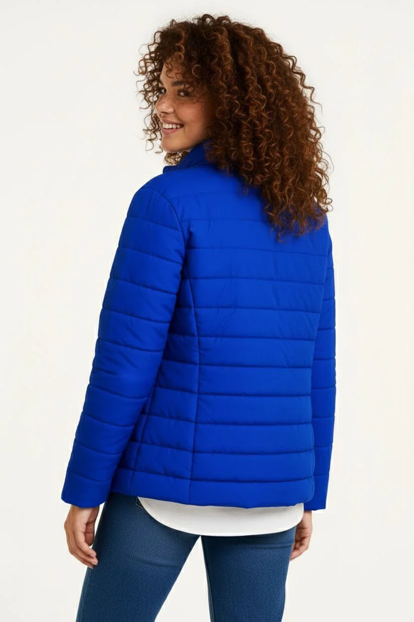 Mikro Su İtici Kapitone Baskılı Astarlı Fermuarlı Bomber Mont – Saks Mavisi