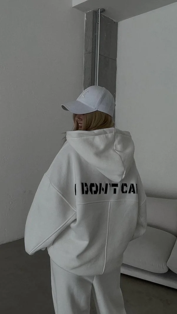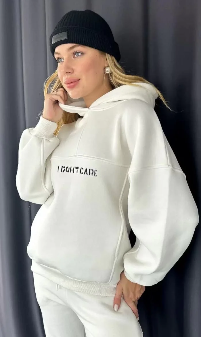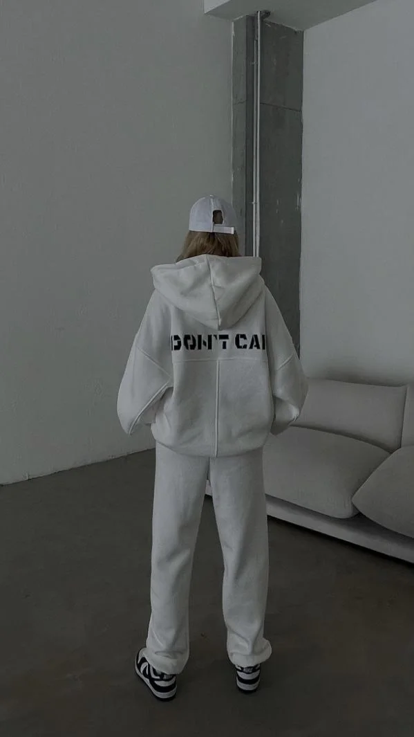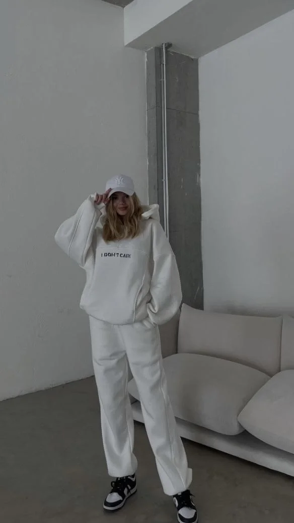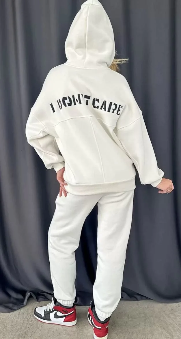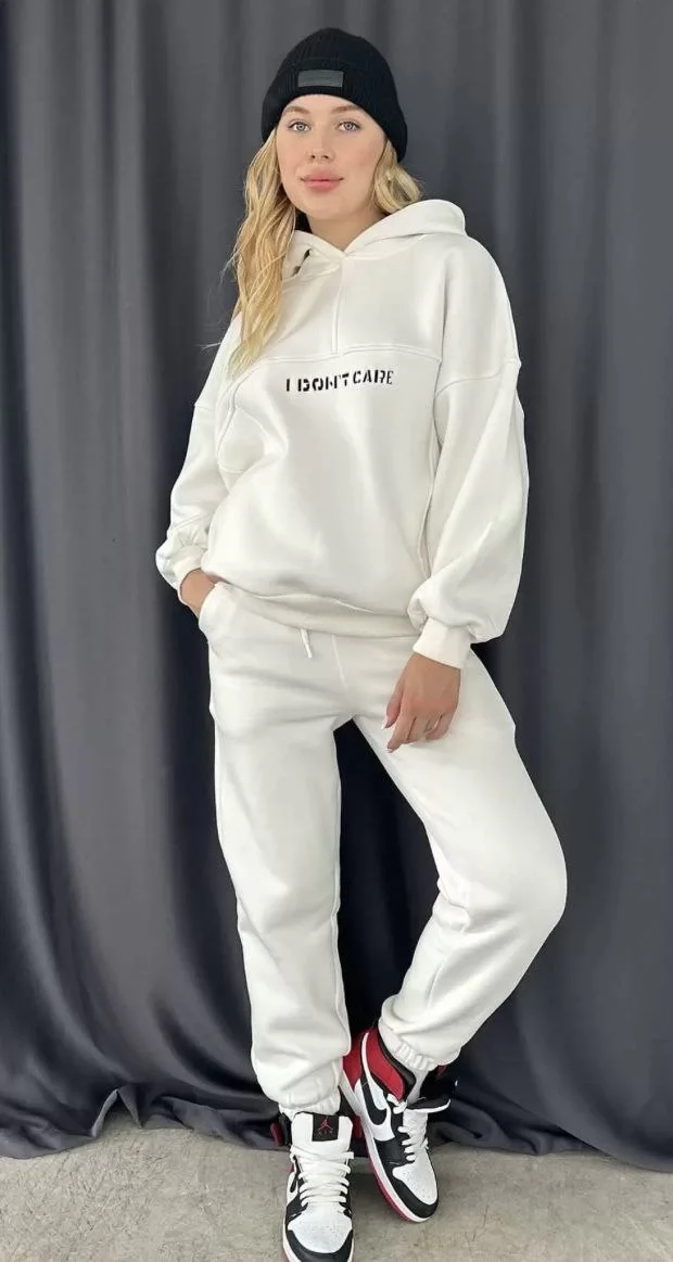 Nakış İşlemeli 3 İplik Pamuklu Sweat Alt-Üst Takım- Beyaz