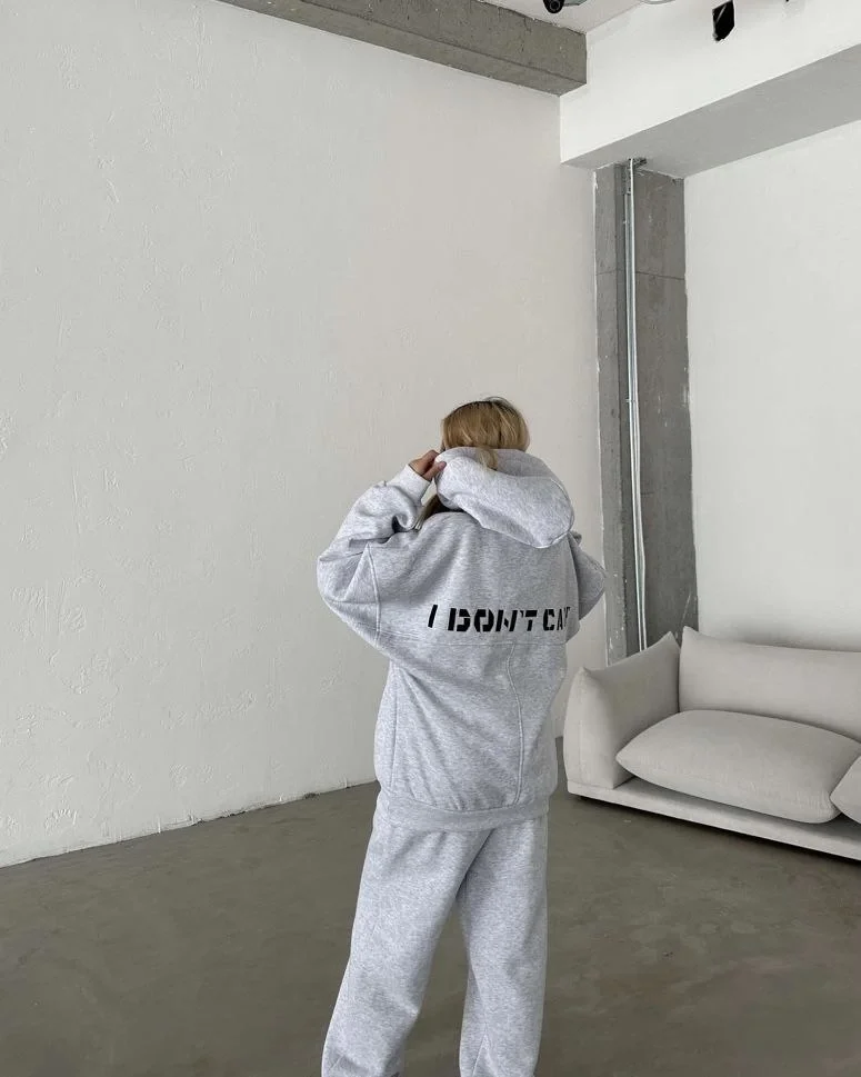 Nakış İşlemeli 3 İplik Pamuklu Sweat Alt-Üst Takım- Gri