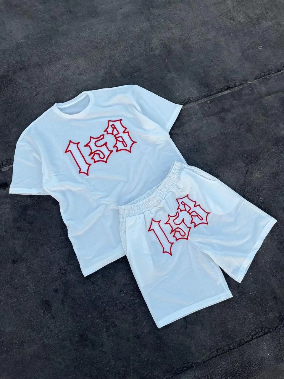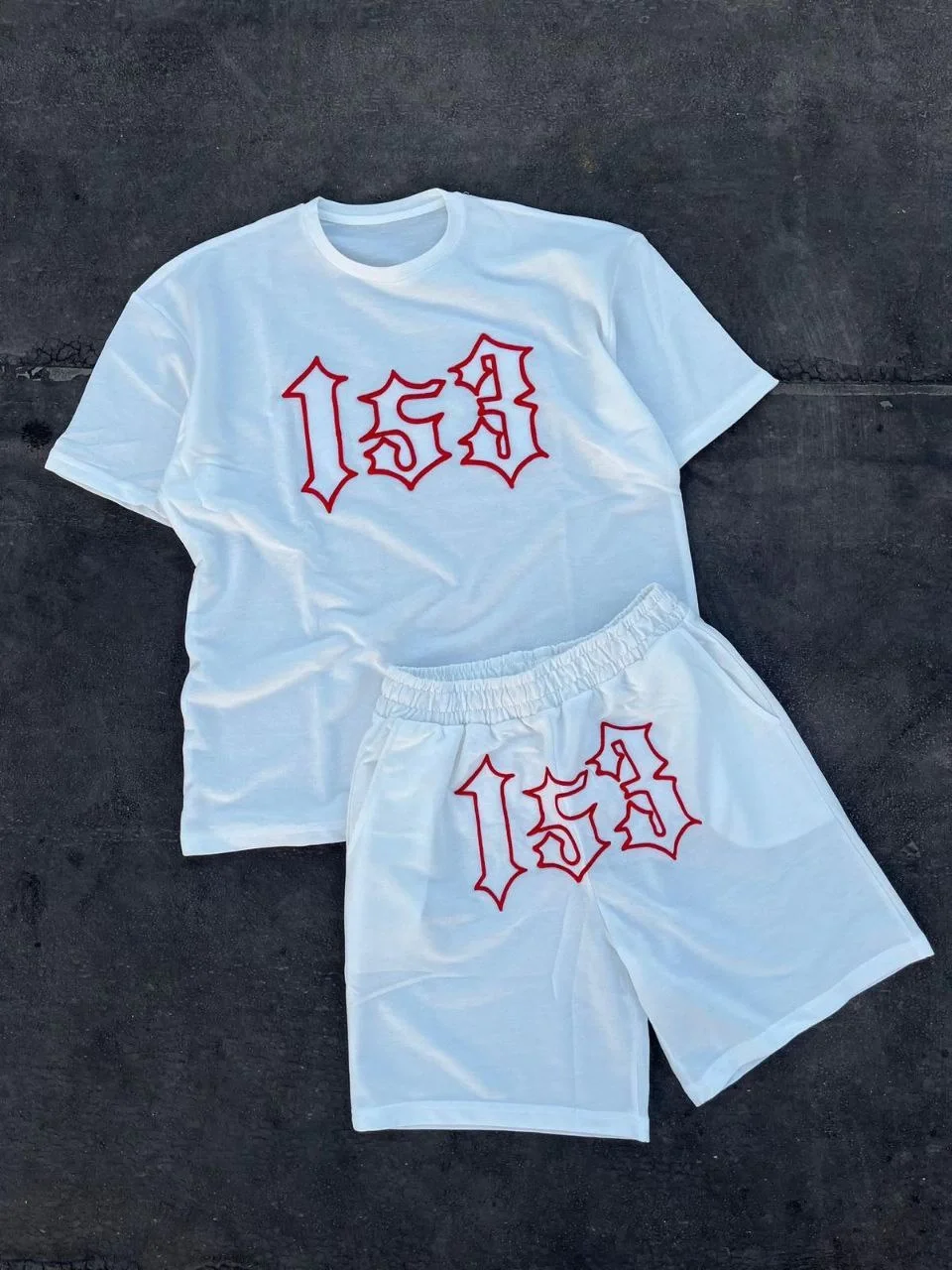 Nakış İşlemeli Şortlu Kısa kol Alt-Üst Takım – Beyaz