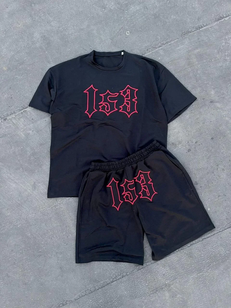 Nakış İşlemeli Şortlu Kısa kol Alt-Üst Takım – Siyah