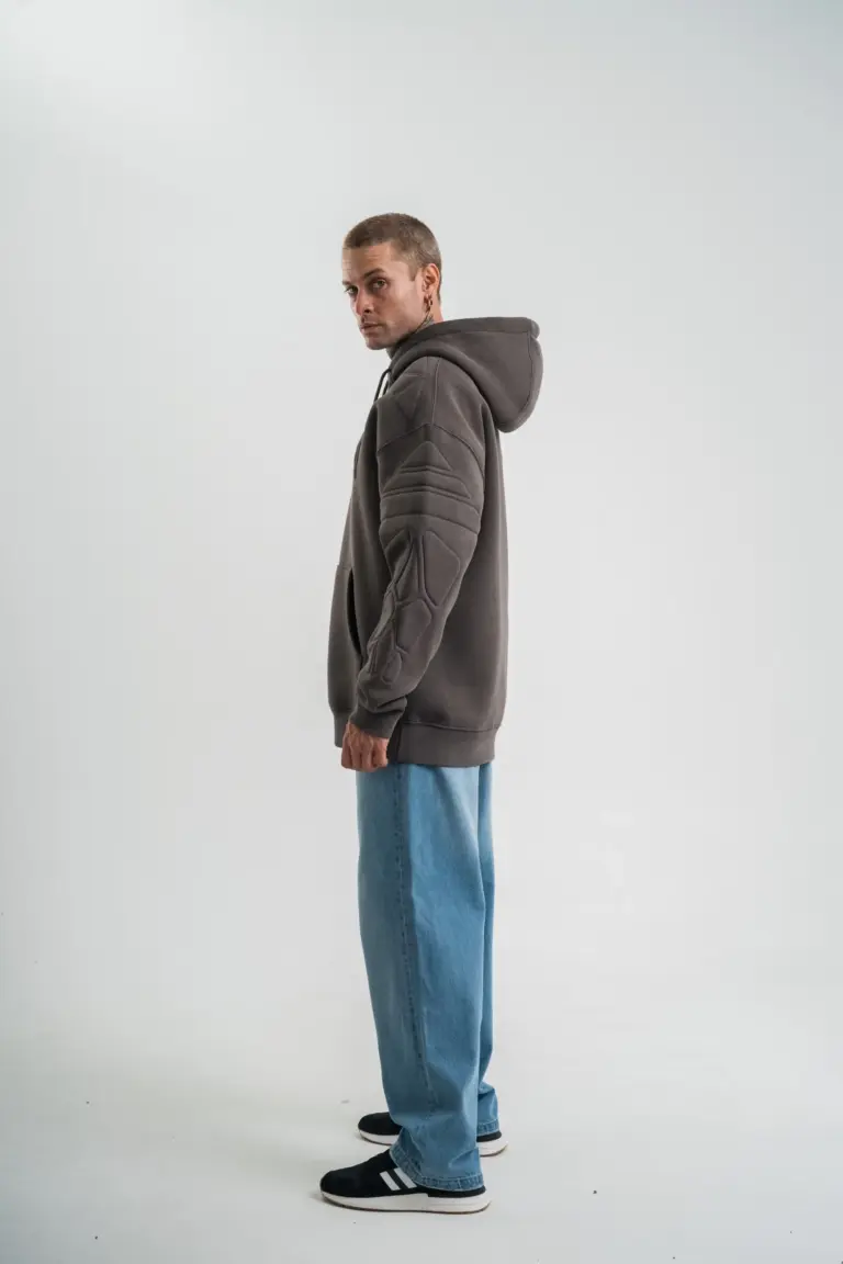 Nakışlı Kapüşonlu Oversize 3 İplik Pamuklu SweatShirt Hoodie – Füme