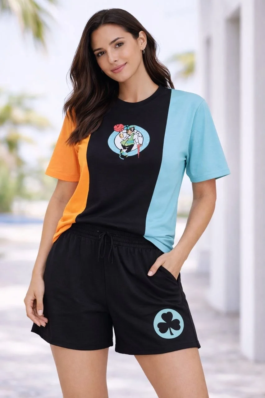 Nakışlı Tişört Şort İkili Takım Oversize Yazlık Kombin – Çok Renkli