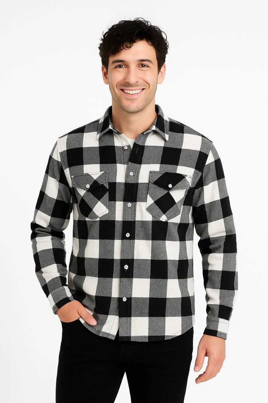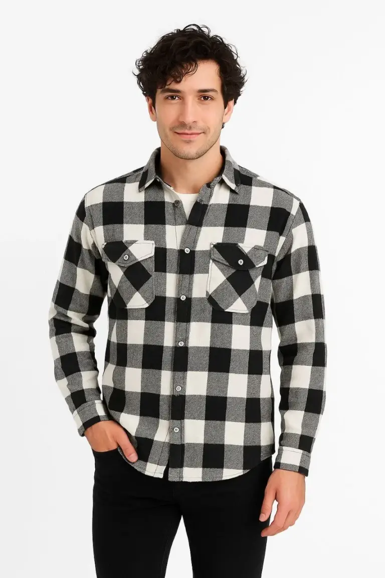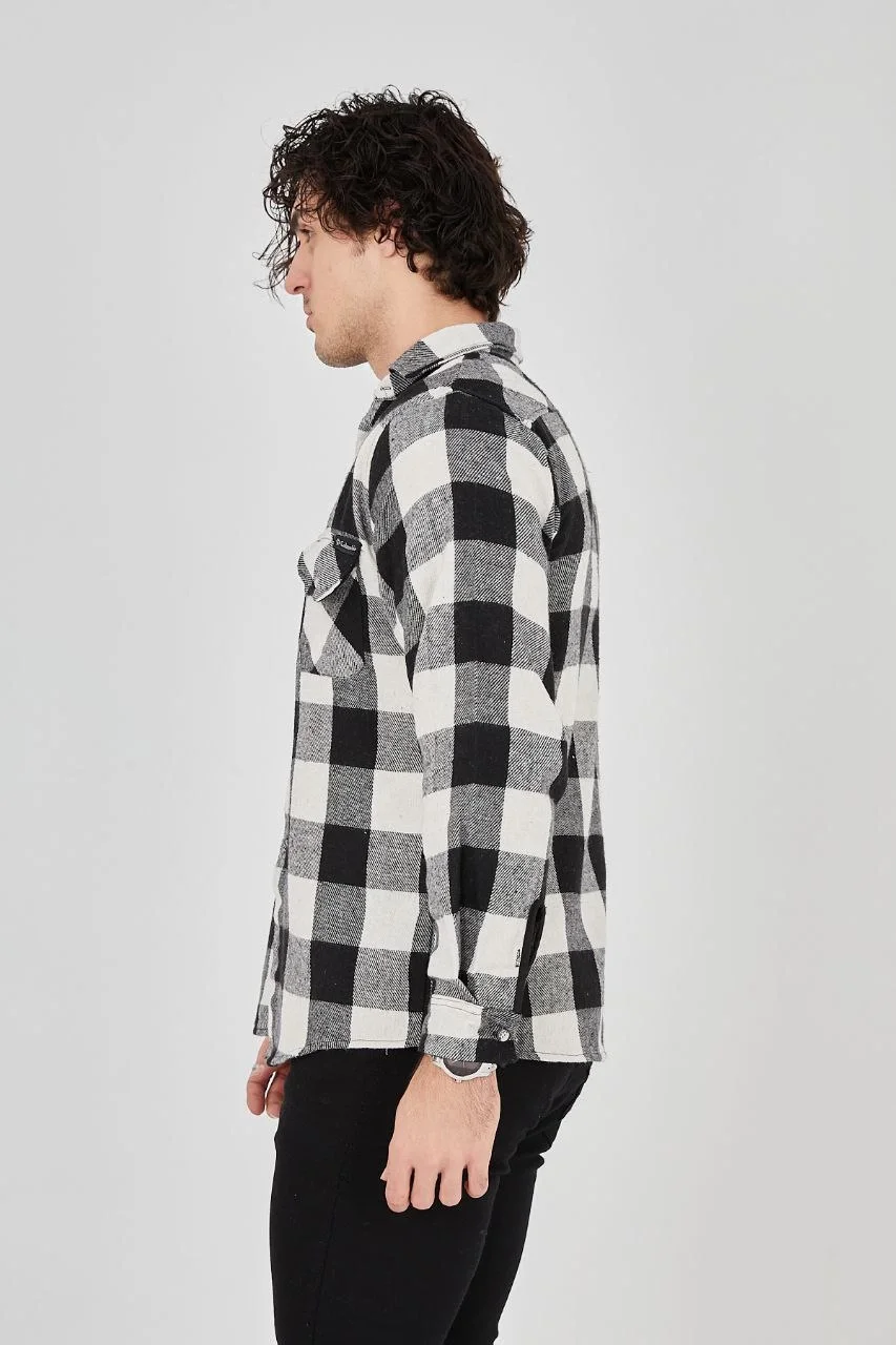 Oduncu Gömlek Uzun Kollu Şardonlu Kareli Desen Regular Fit Manşetli Çift – Siyah