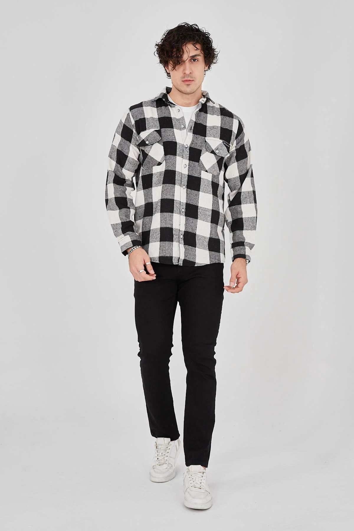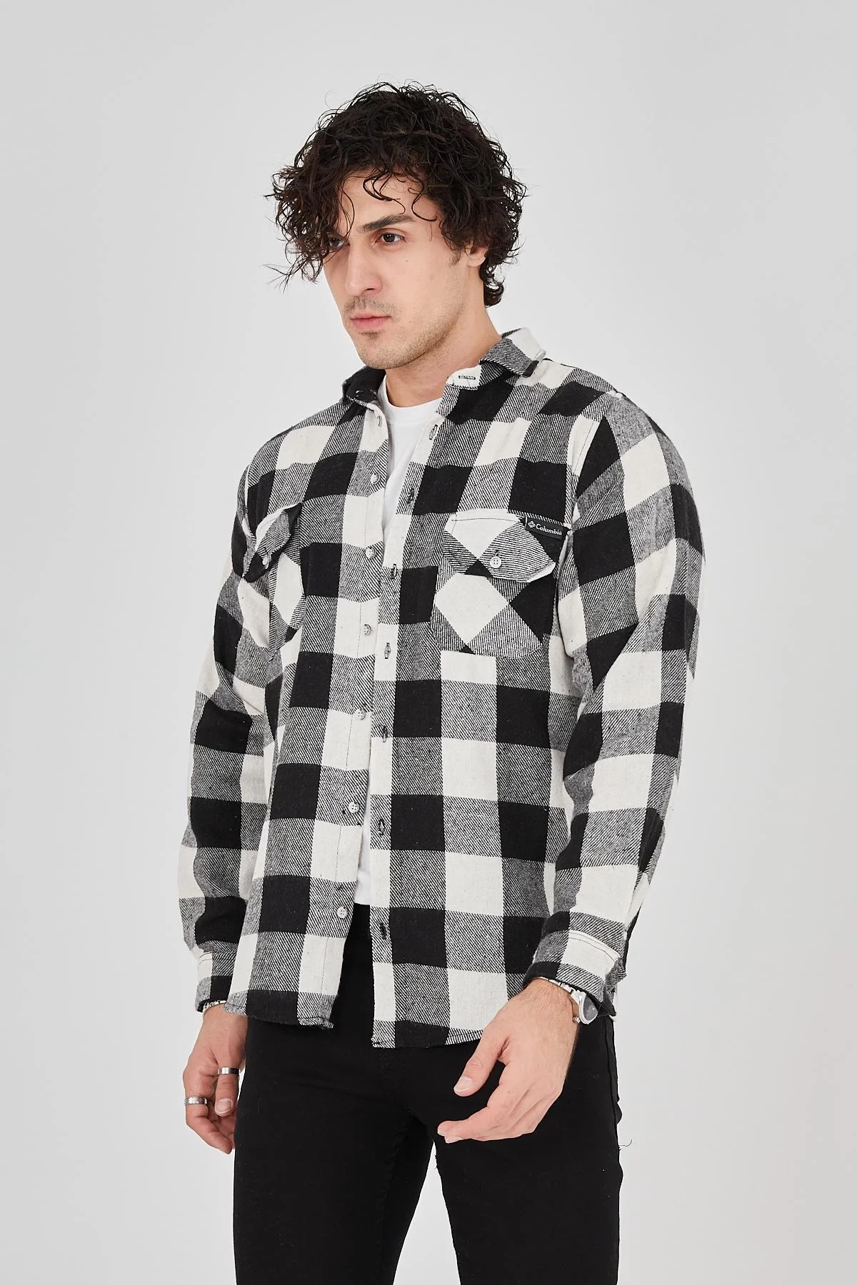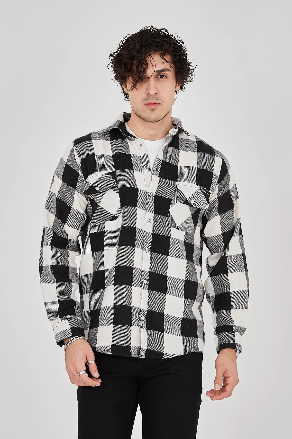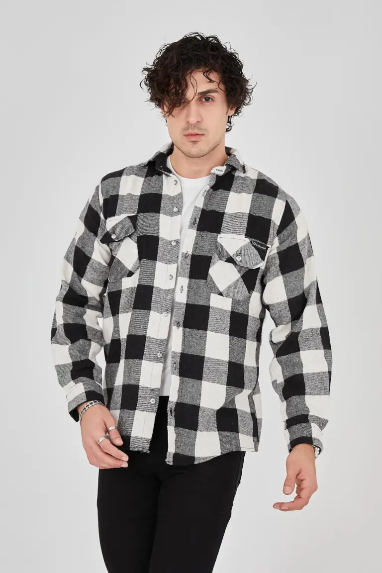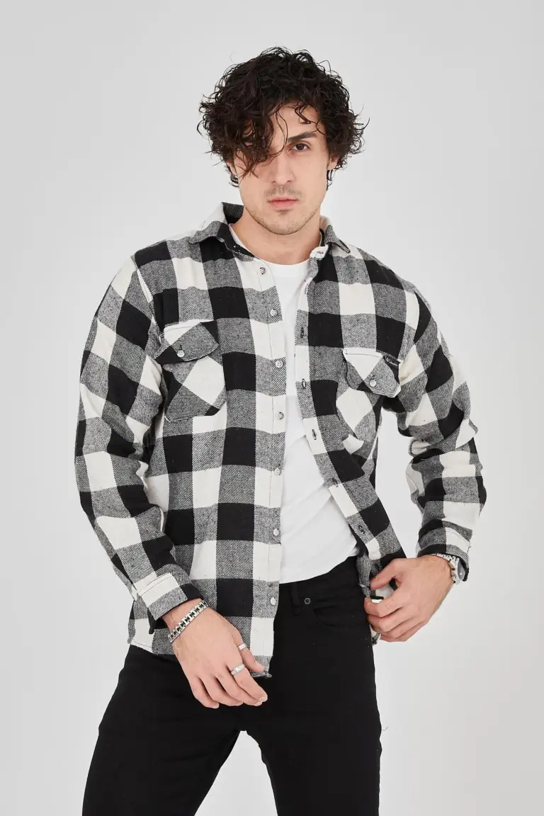 Oduncu Gömlek Uzun Kollu Şardonlu Kareli Desen Regular Fit Manşetli Çift – Siyah