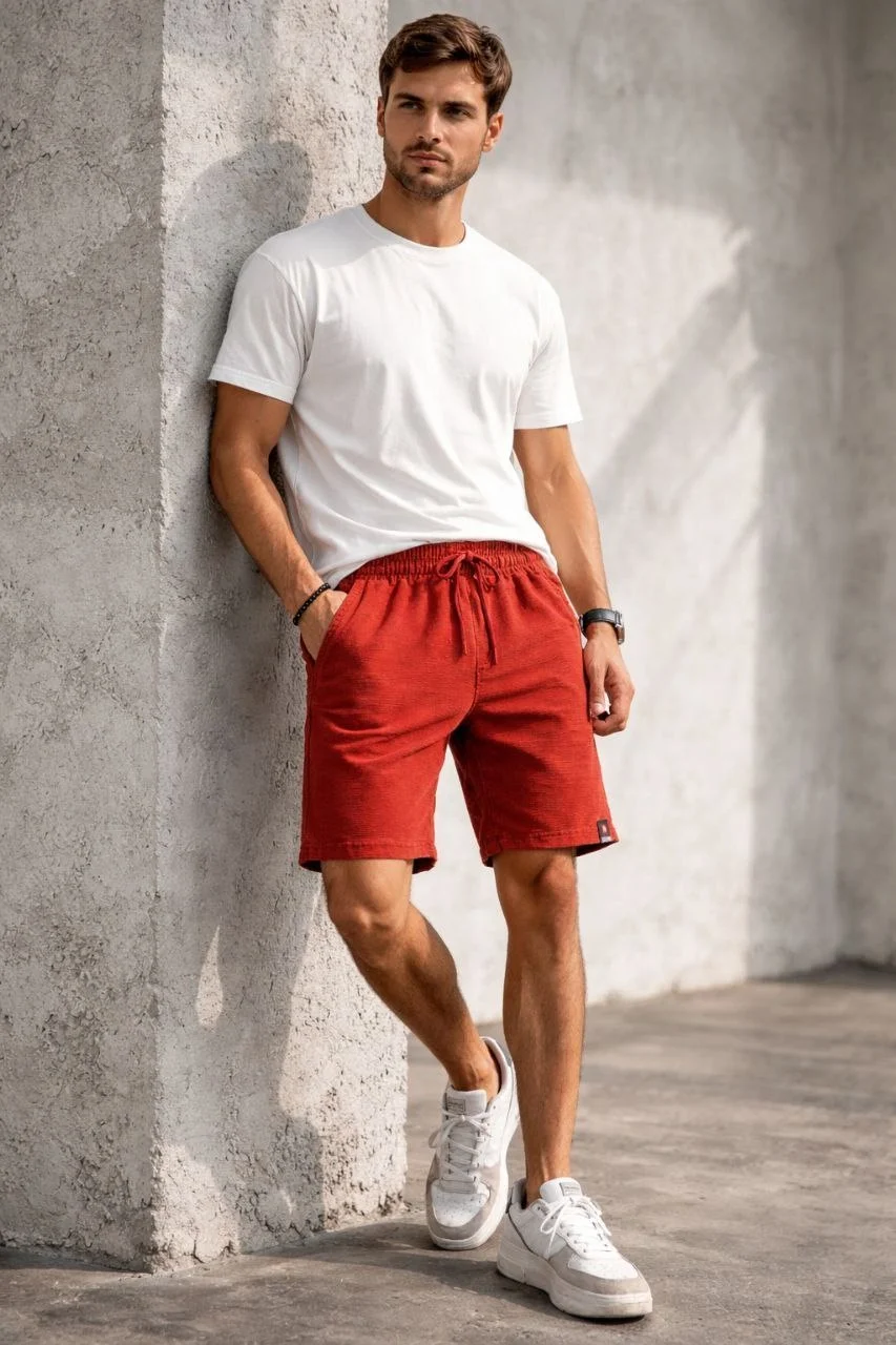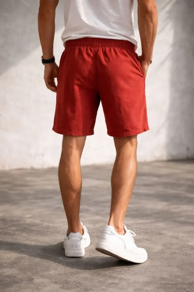 otoban Dokuma Kumaş Beli Lastikli, Cepli, Yazlık Şort – Turuncu