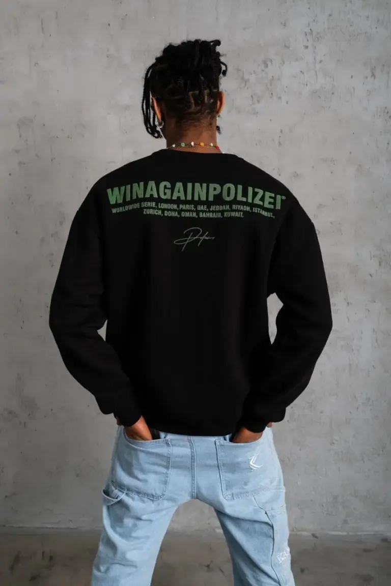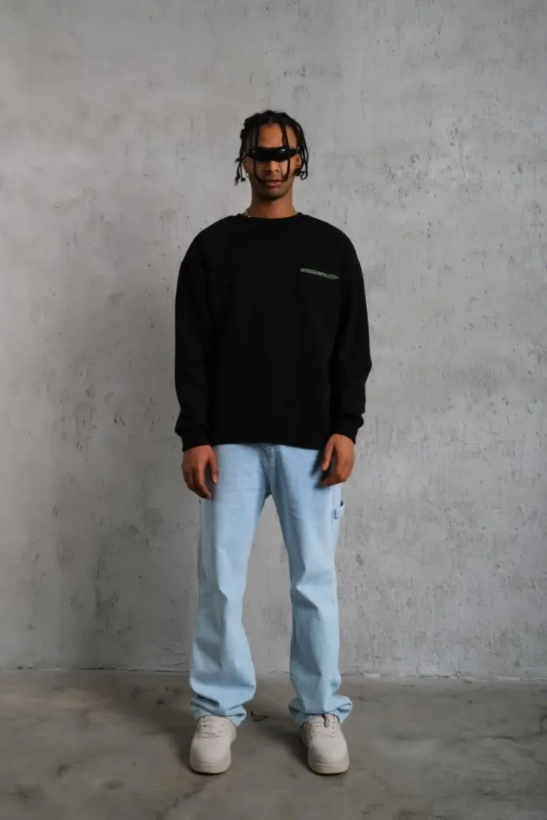 Oversize Sweatshirt Ön ve Sırt Baskılı 3 İplik Pamuklu – Siyah