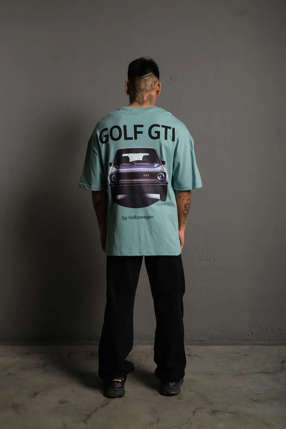 Oversize Tişört Golf GTI Retro Araba Baskılı T-shirt – Mint Yeşili