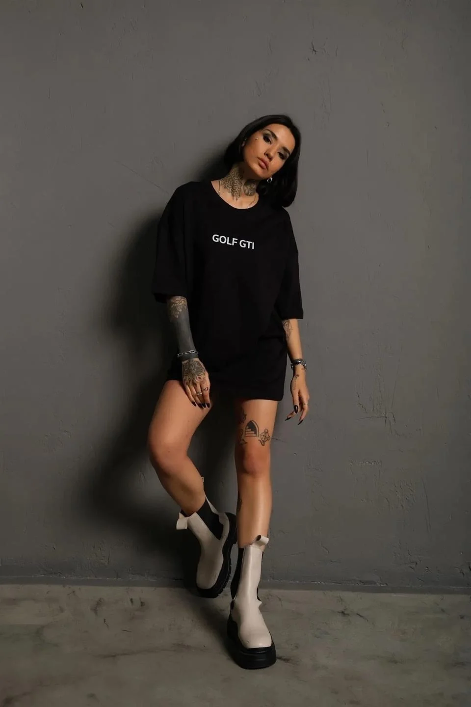 Oversize Tişört Golf GTI Retro Araba Baskılı T-shirt- Siyah