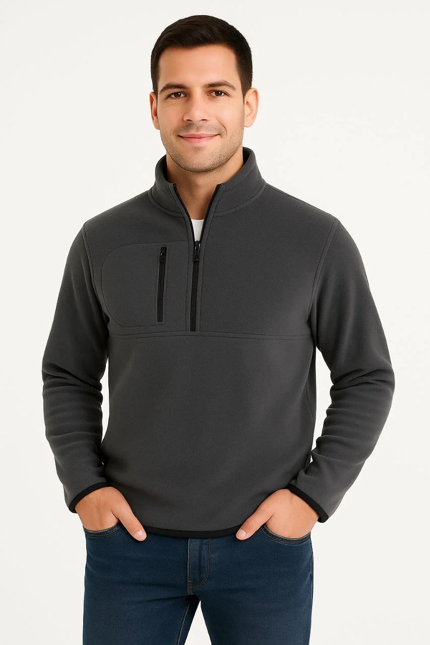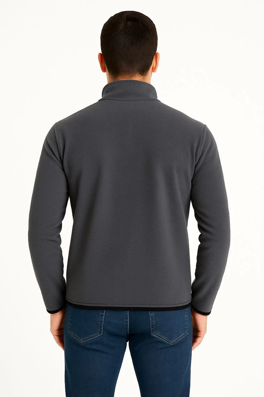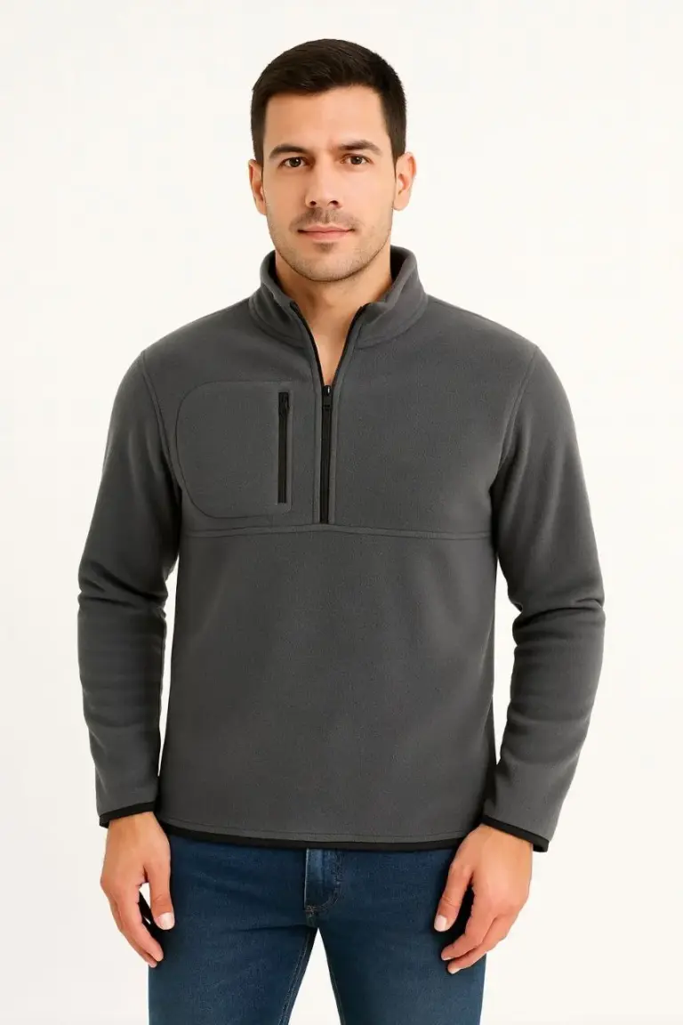 Polar Kazak Dik Yaka Yarım Fermuarlı Fermuarlı Göğüs Cepli Siyah Biyeli – Füme
