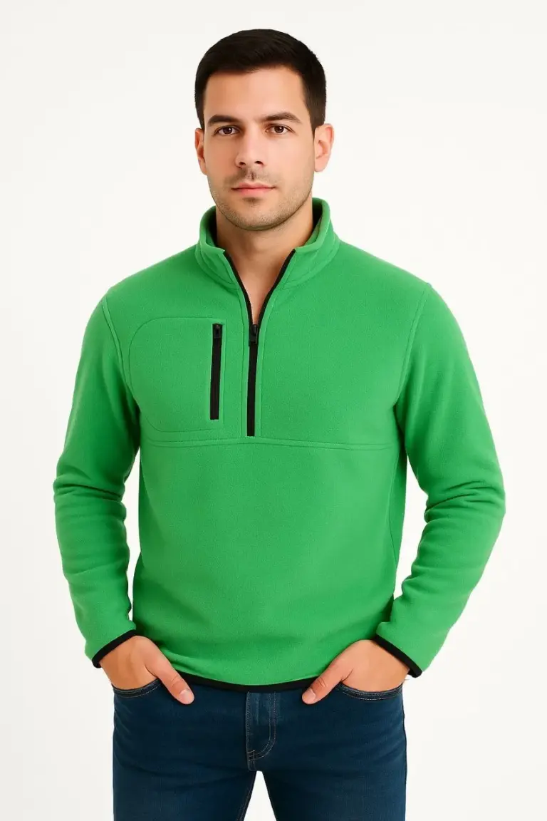 Polar Kazak Dik Yaka Yarım Fermuarlı Fermuarlı Göğüs Cepli Siyah Biyeli – Yeşil