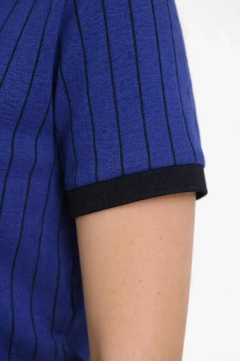 Polo Yaka Çizgili Tişört Kısa Kol Düğmeli Yazlık T-Shirt – Saks Mavisi