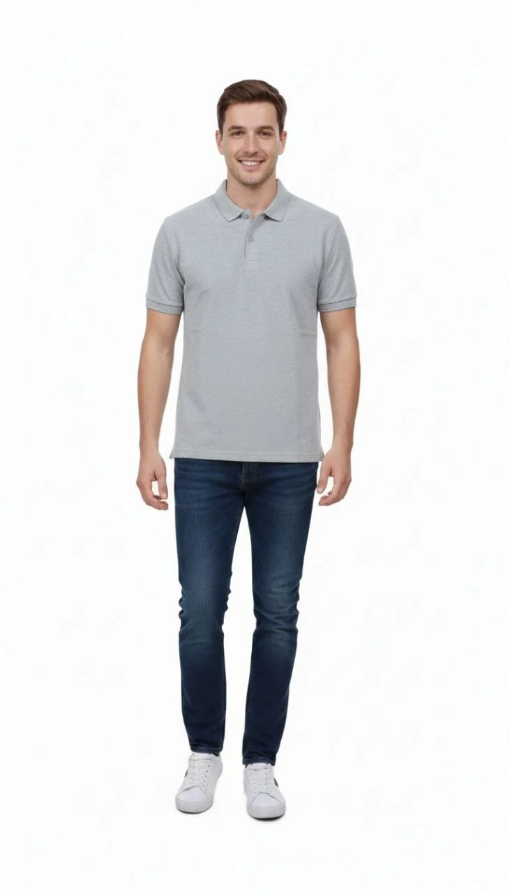 Polo Yaka Düğmeli Pike Kumaş Tişört Regular Fit Kısa Kol T-Shirt – Gri