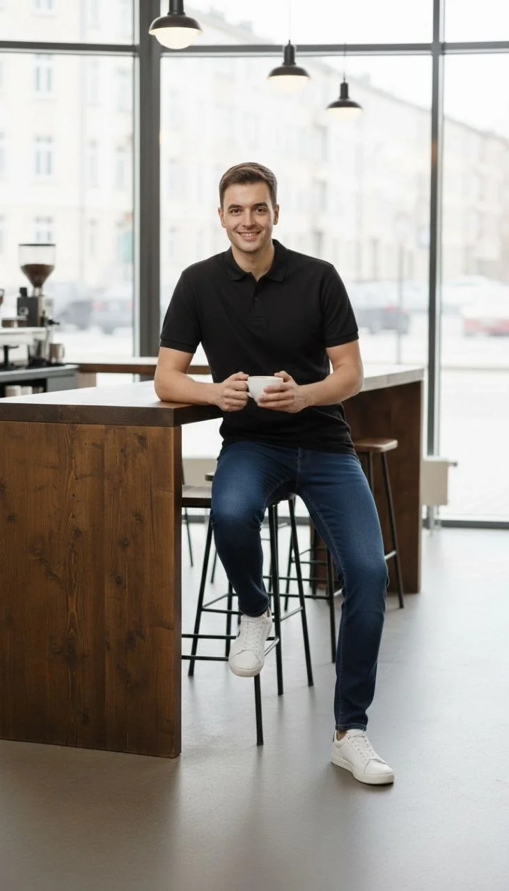 Polo Yaka Düğmeli Pike Kumaş Tişört Regular Fit Kısa Kol T-Shirt – Siyah