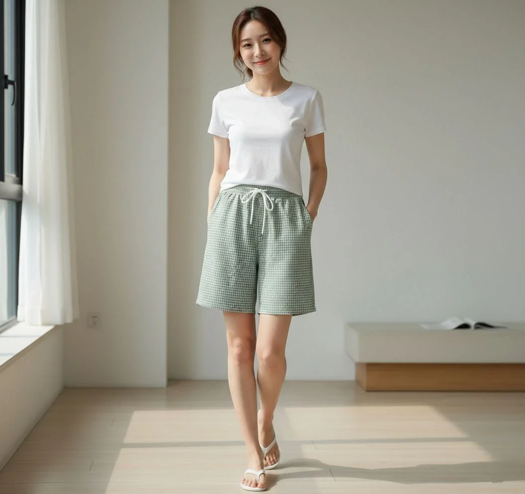 Pötikareli Şort Beli Lastikli Bağcıklı Cepli Kesim Şort – Mint Yeşili