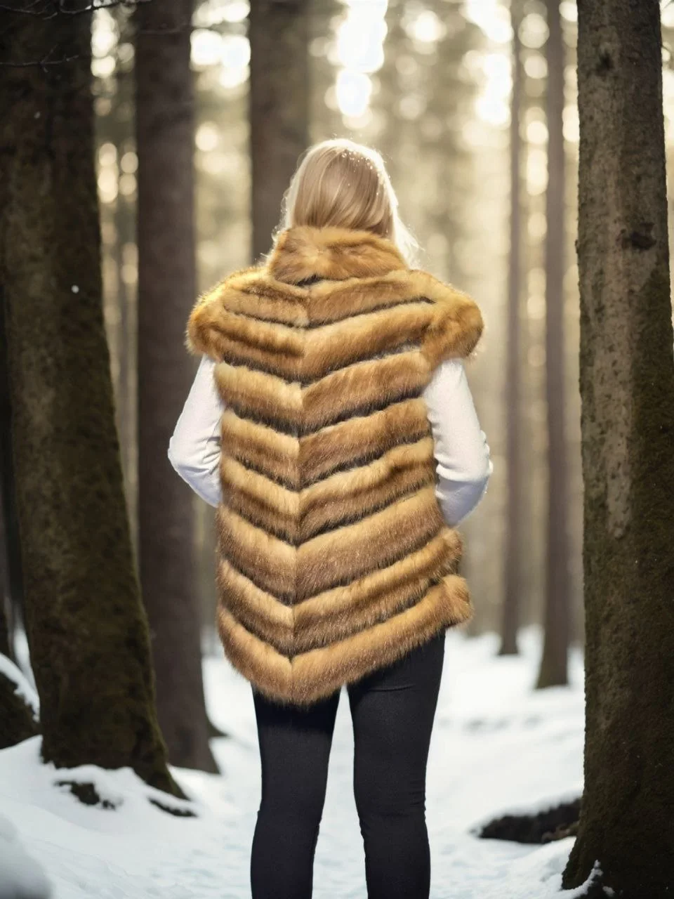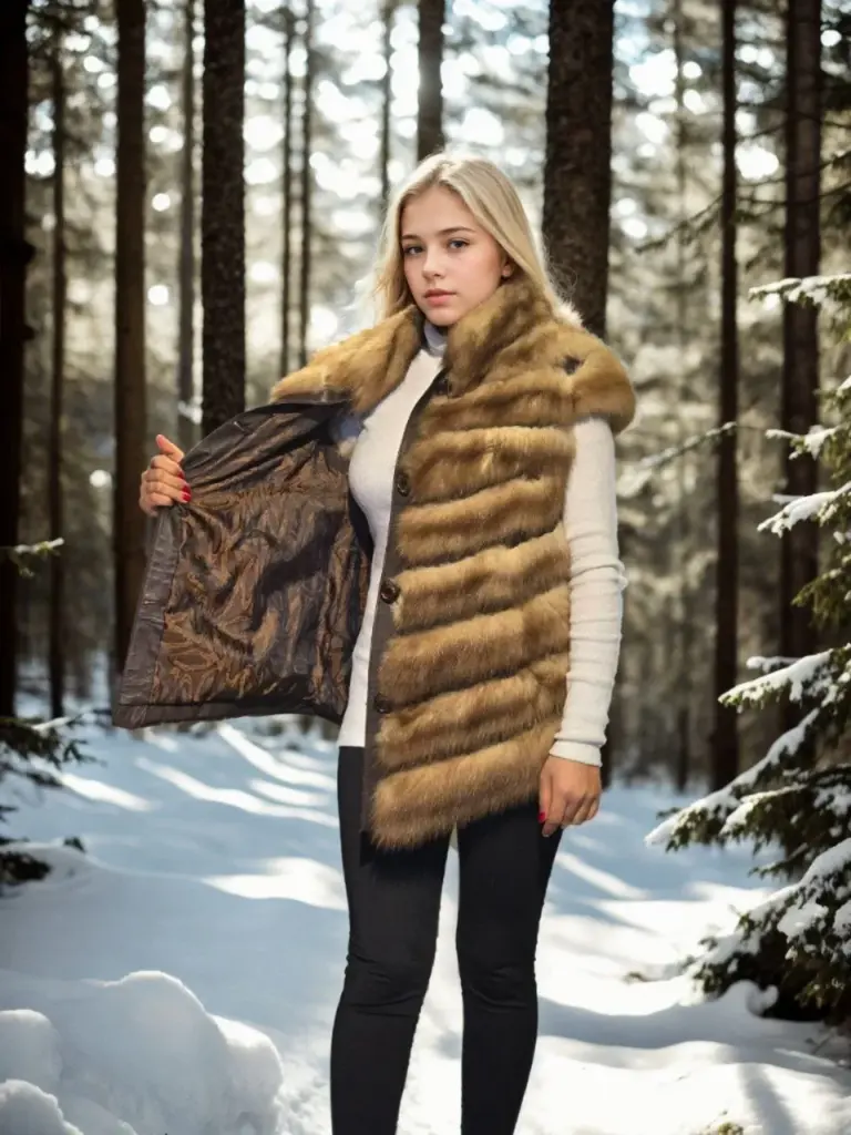 Premium Doğal Kolsuz Kürk – Kahve