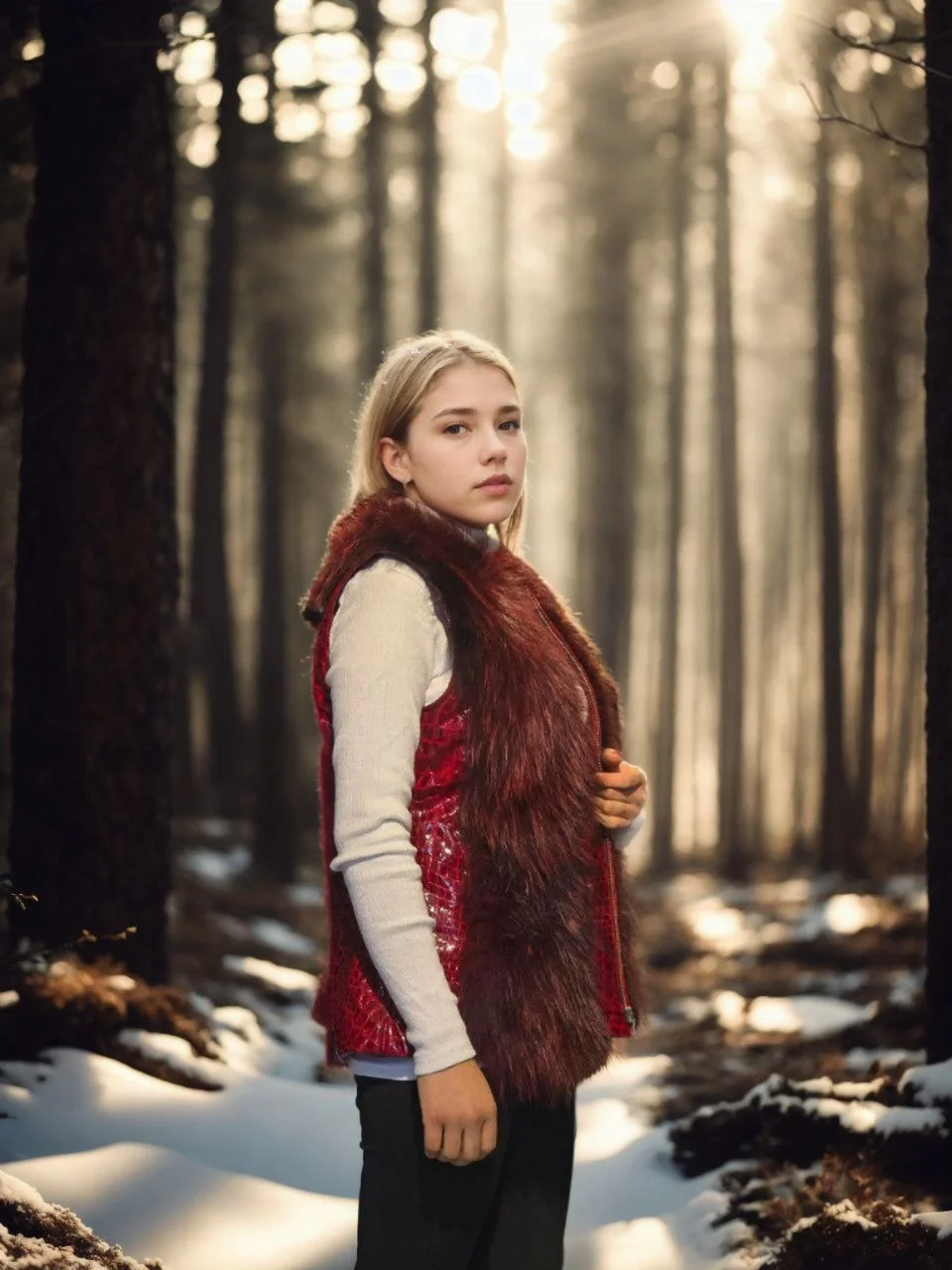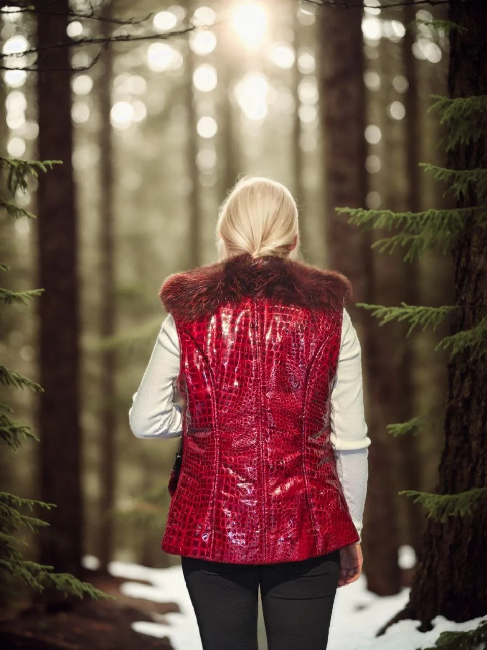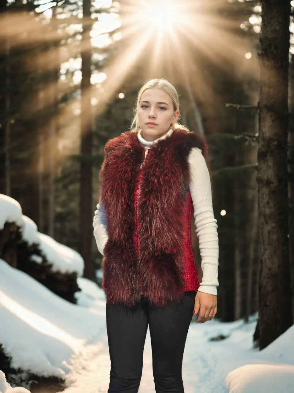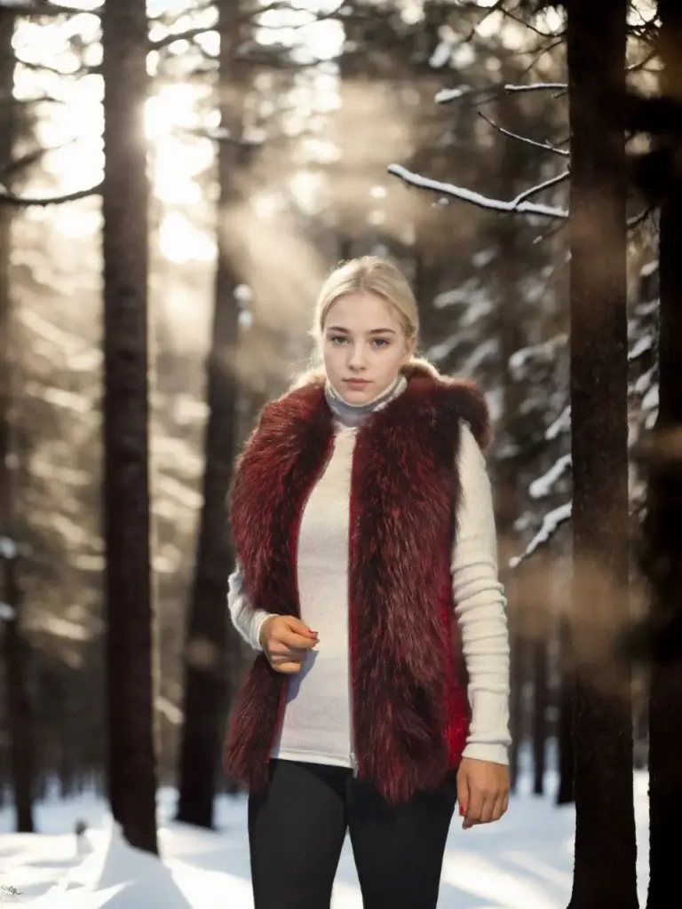 Premium Doğal Kürk Kolsuz Fermuarlı Yelek – Kırmızı