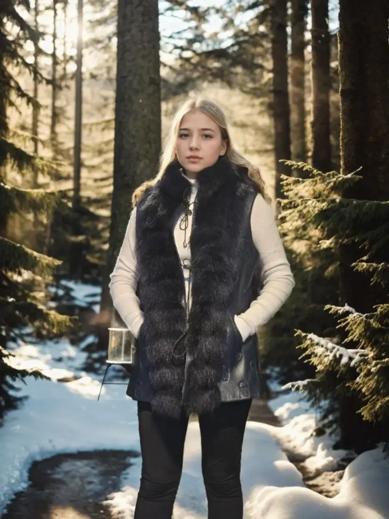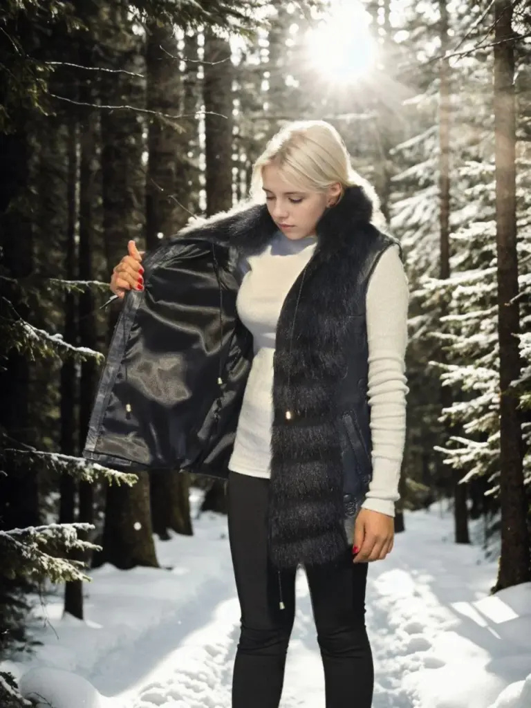 Premium Doğal Kürk Kolsuz Fermuarlı Yelek – Lacivert