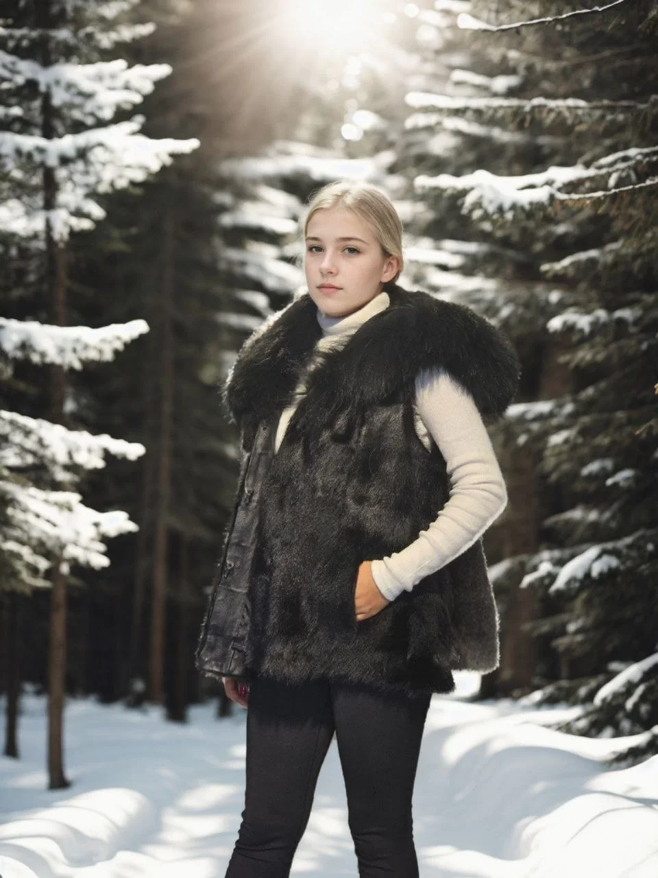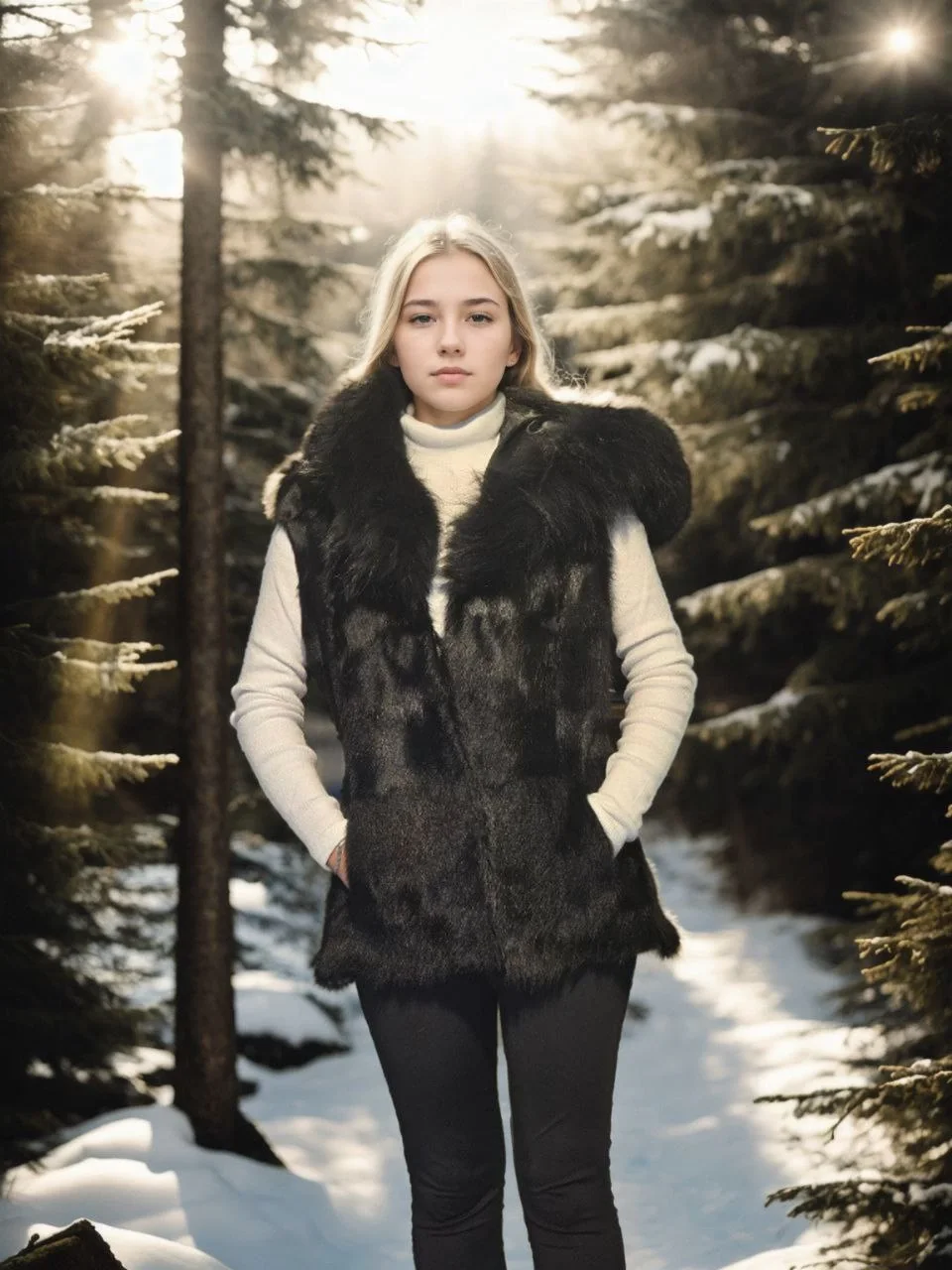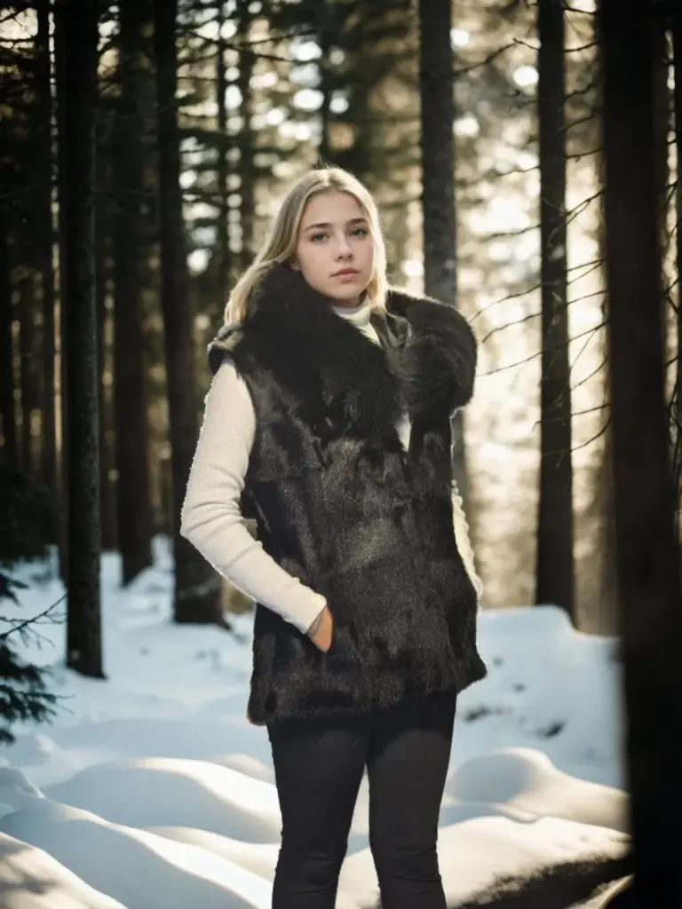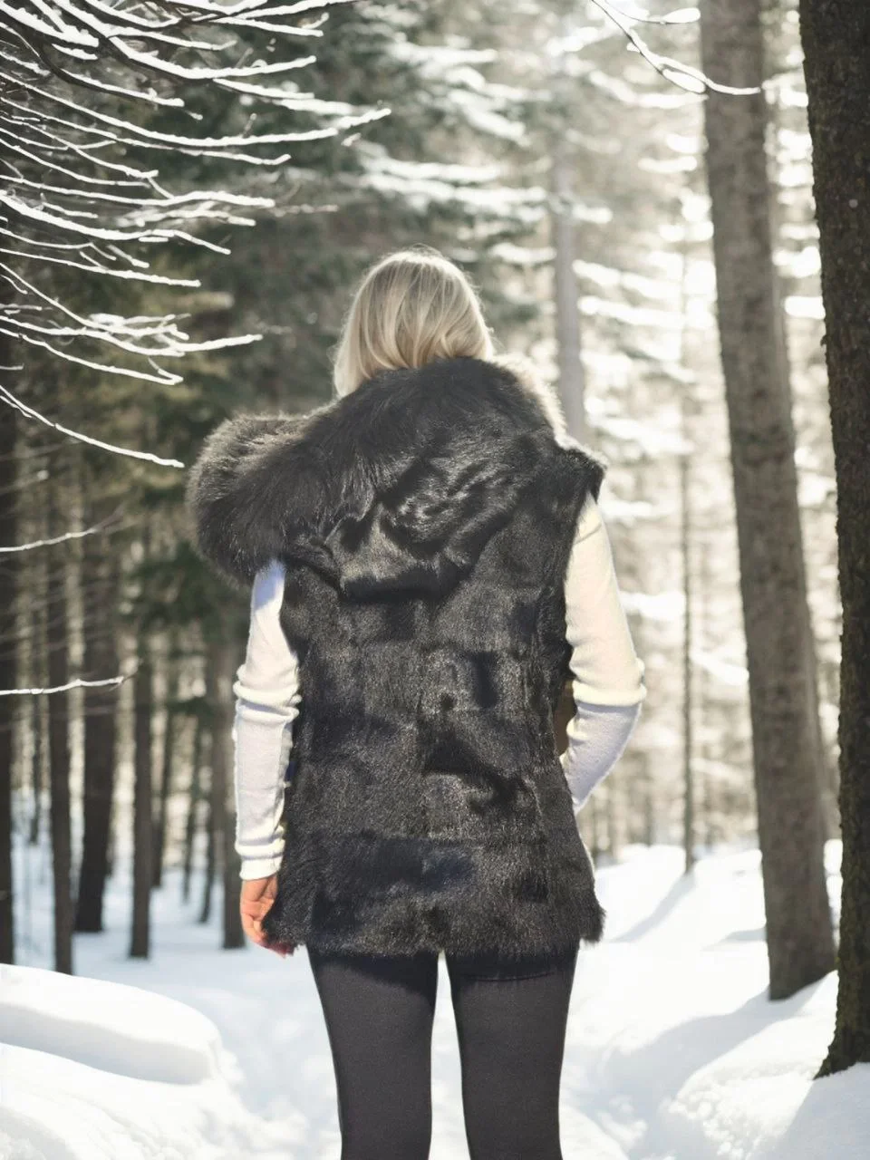 Premium Doğal Kürk Kolsuz Kapüşonlu Yelek – Siyah