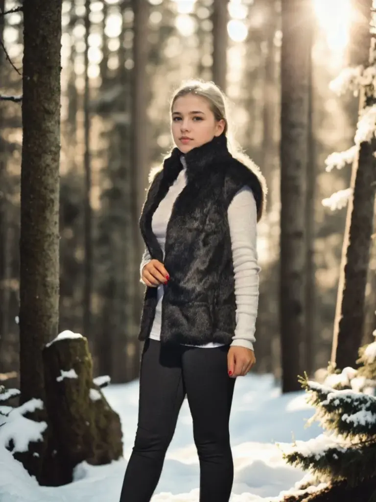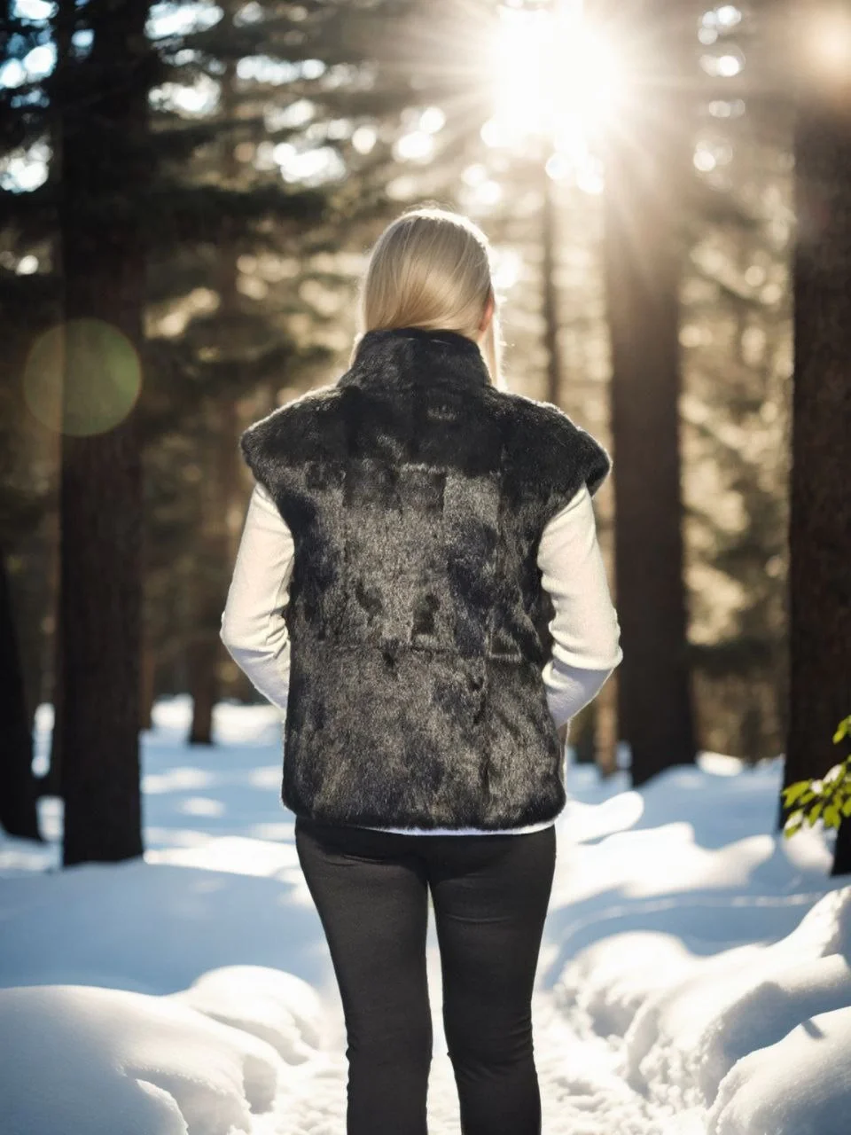 Premium Doğal Kürk Kolsuz Kürk – Siyah