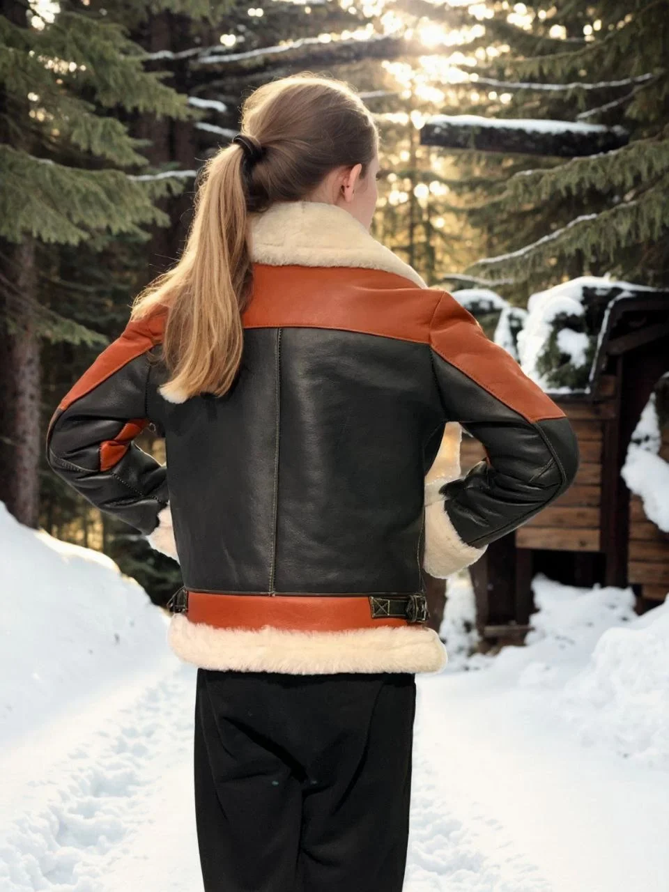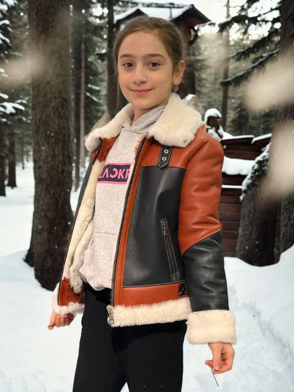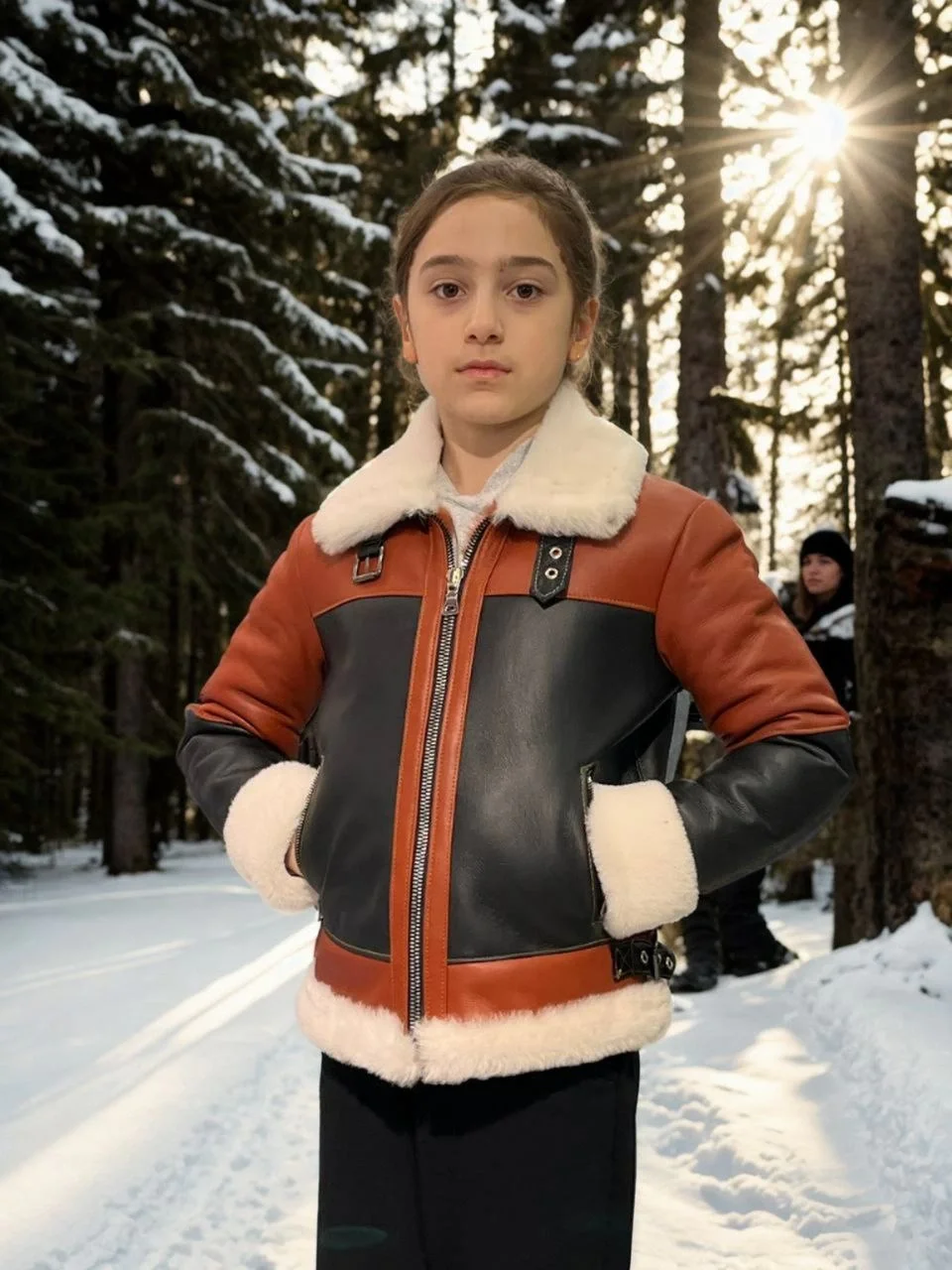 Premium Doğal Yakalı Parçalı Kürk – Kiremit