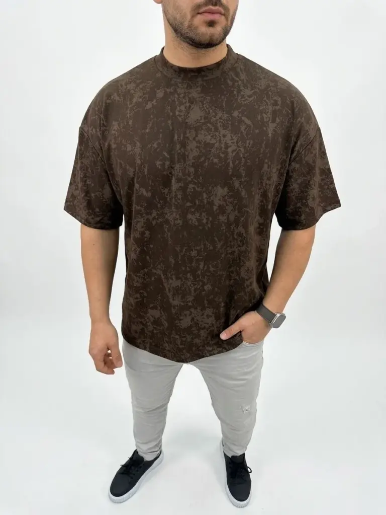 Premium Tişört OSY Yumuşak Dokulu Yıkamalı Oversize T-Shirt – Kahverengi
