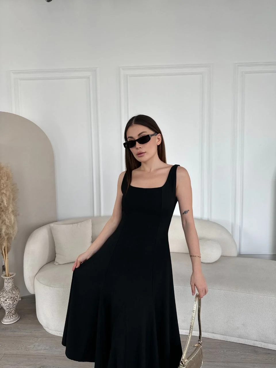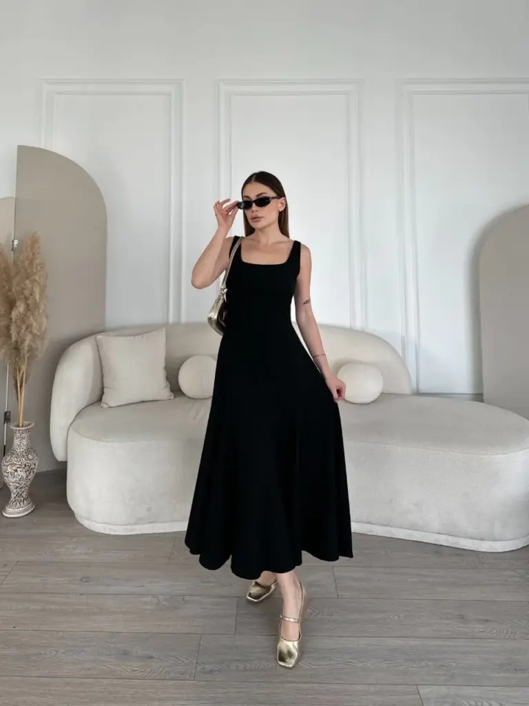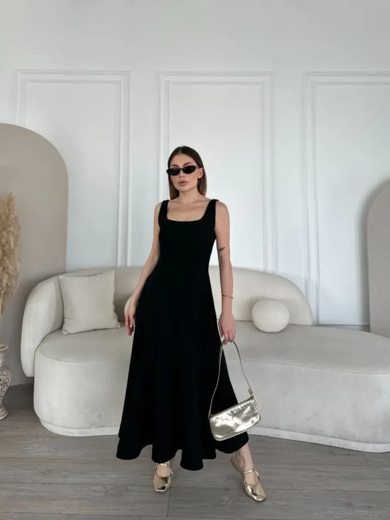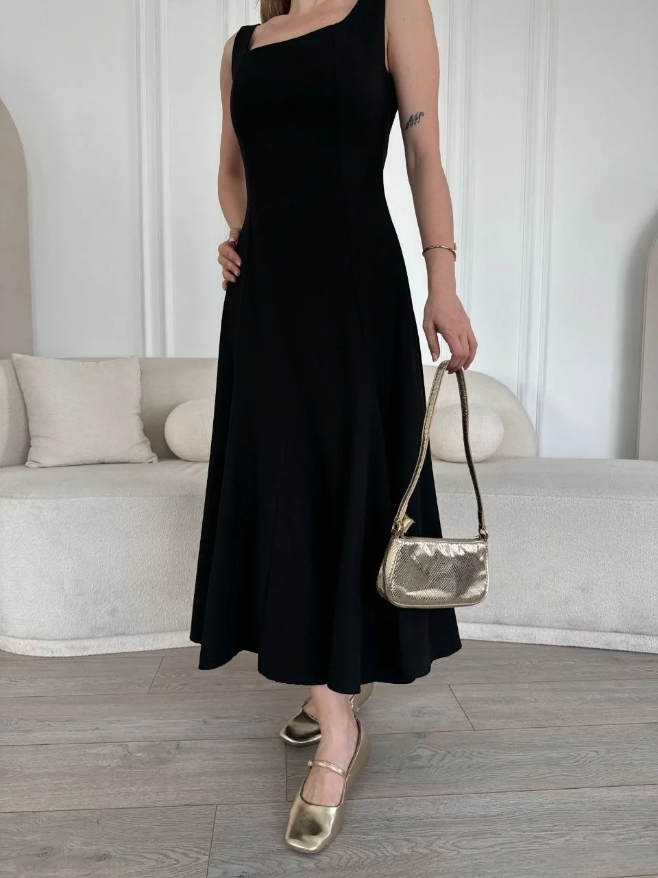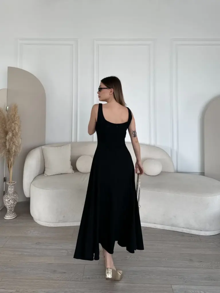 Sırt Dekolteli Kolsuz Uzun Elbise – Siyah