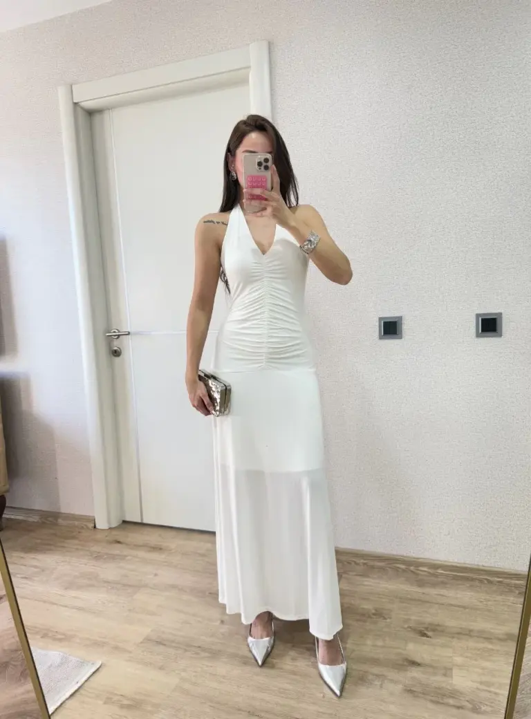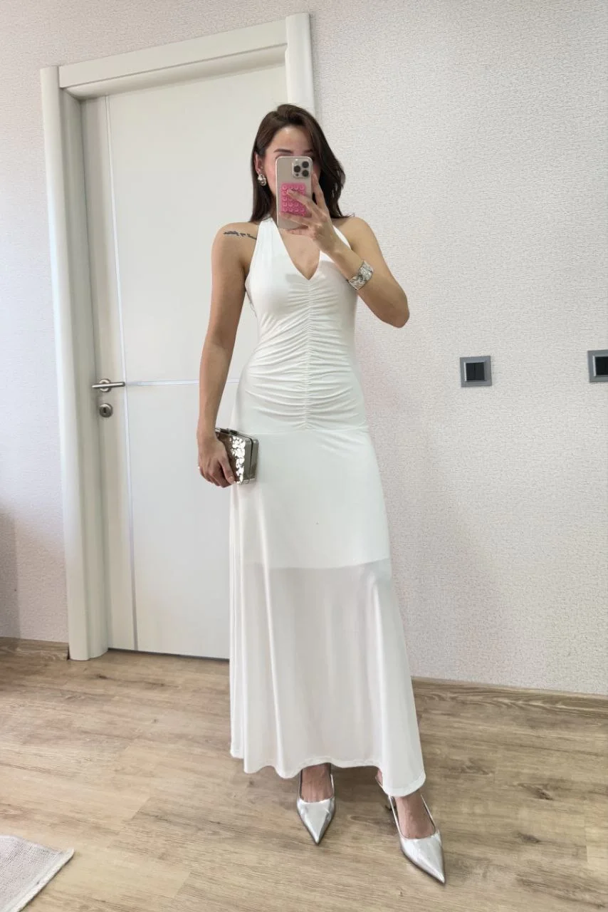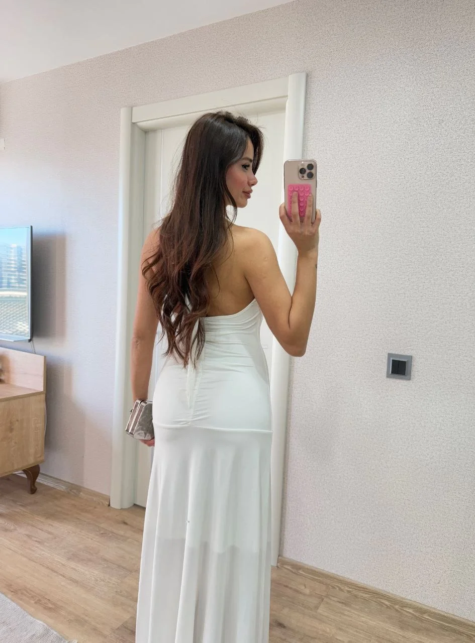 Sırt dekolteli Uzun Elbise – Beyaz