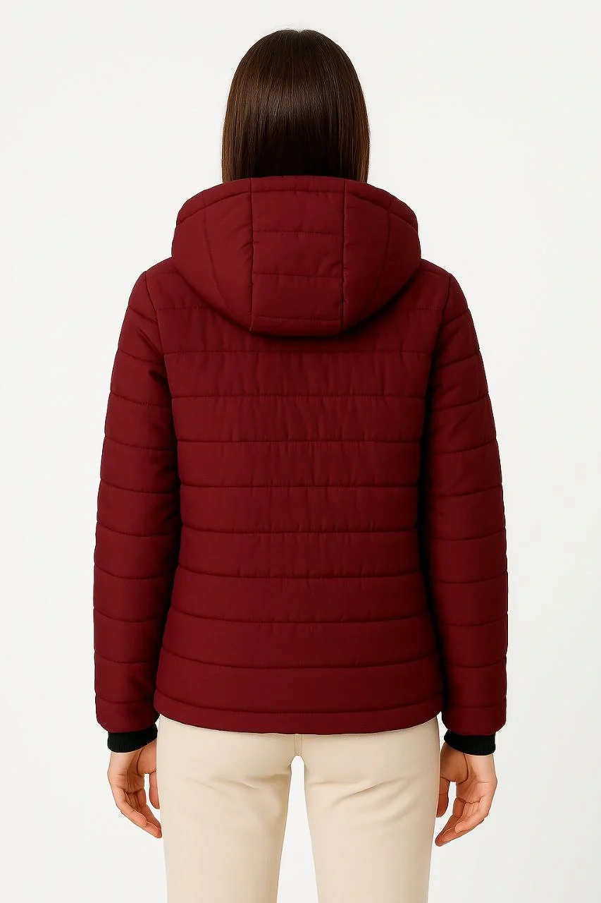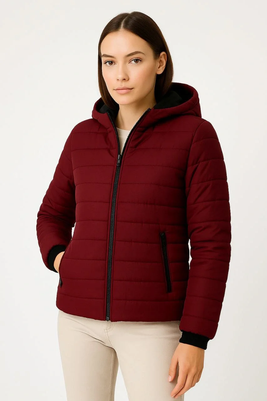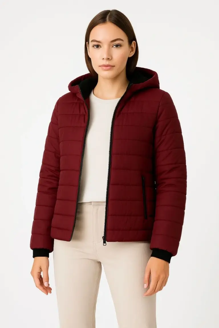 Şişme Kapüşonlu Fermuarlı Mont Su İtici Kapitone Cepli Ceket – Bordo