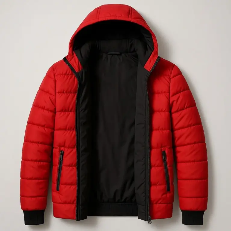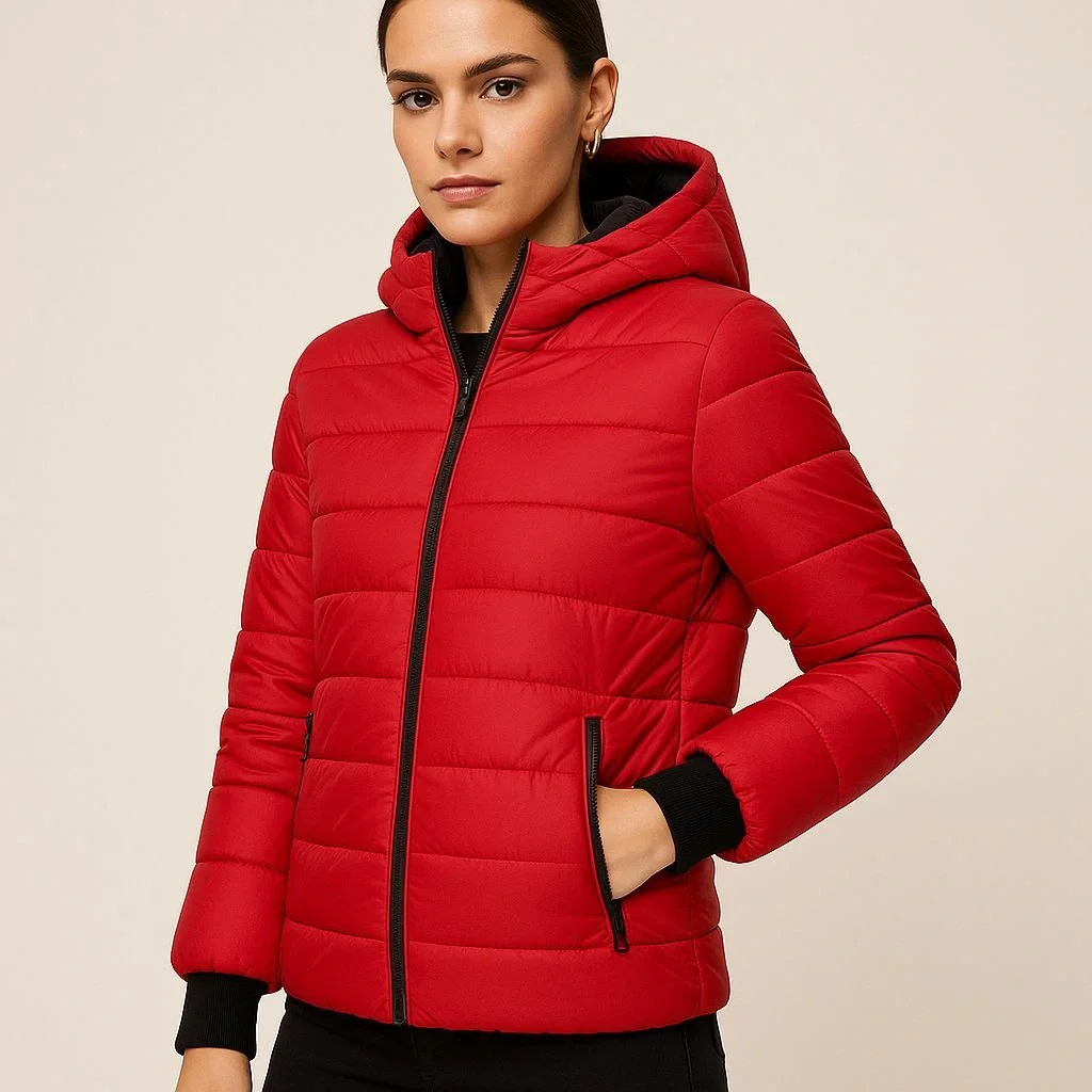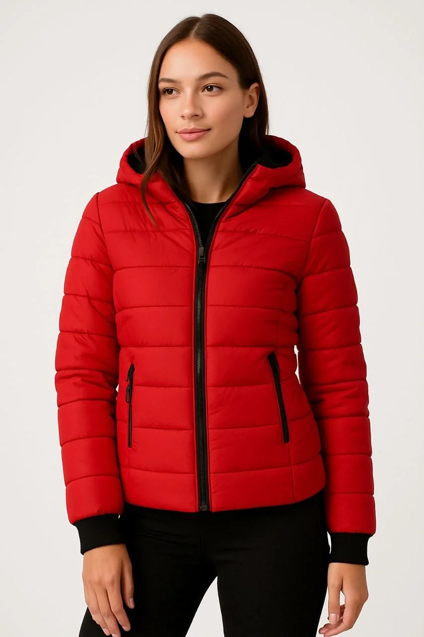 Şişme Kapüşonlu Fermuarlı Mont Su İtici Kapitone Cepli Ceket – Kırmızı