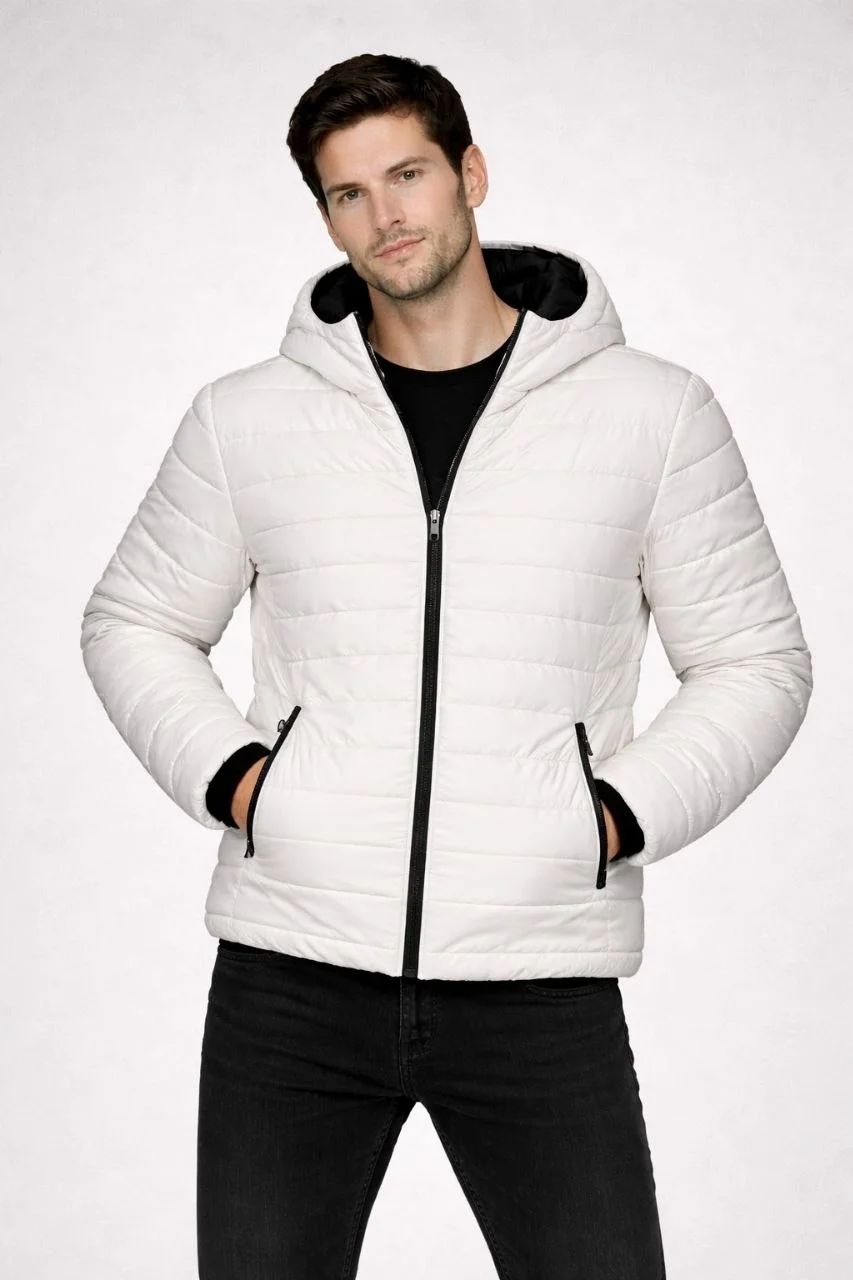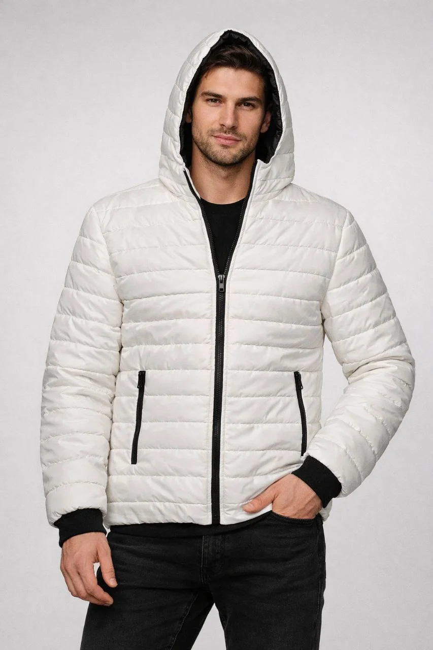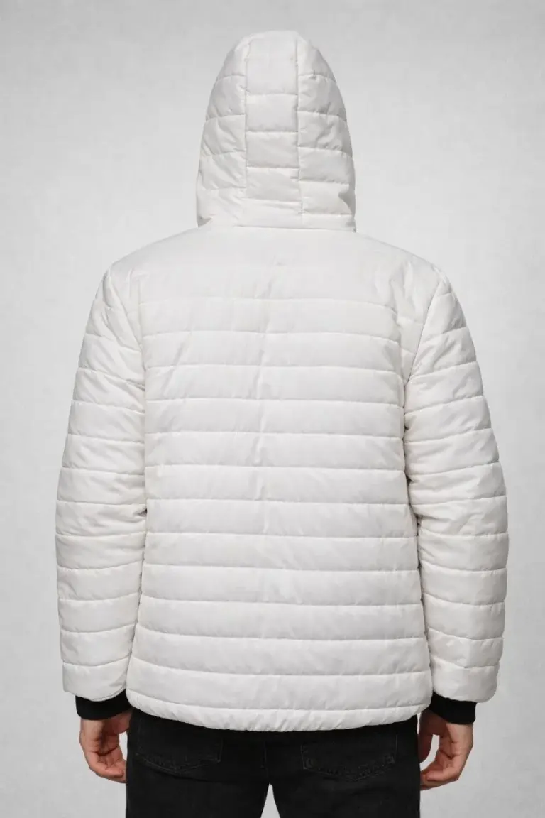 Şişme Kapüşonlu Fermuarlı Mont Su İtici Kapitone Cepli Ceket – Krem