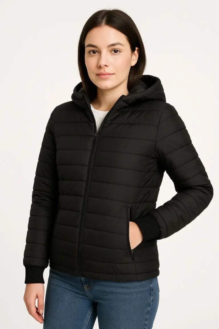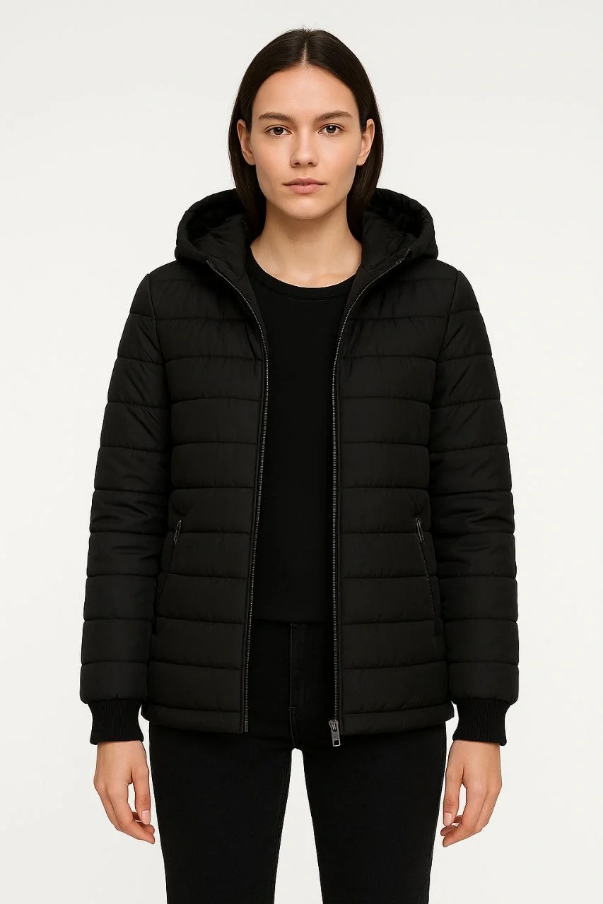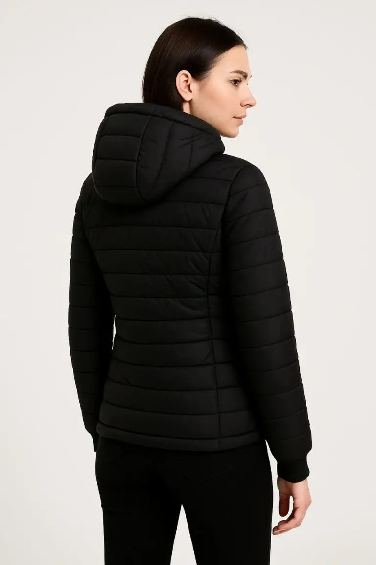 Şişme Kapüşonlu Fermuarlı Mont Su İtici Kapitone Cepli Ceket – Siyah
