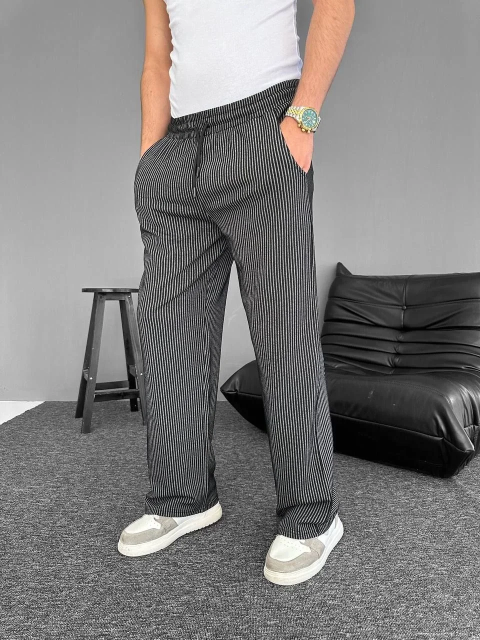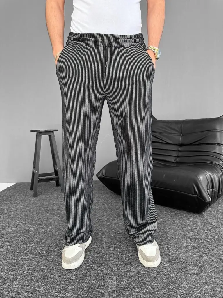 Su Yolu Çizgili Cepli Pantolon – Siyah