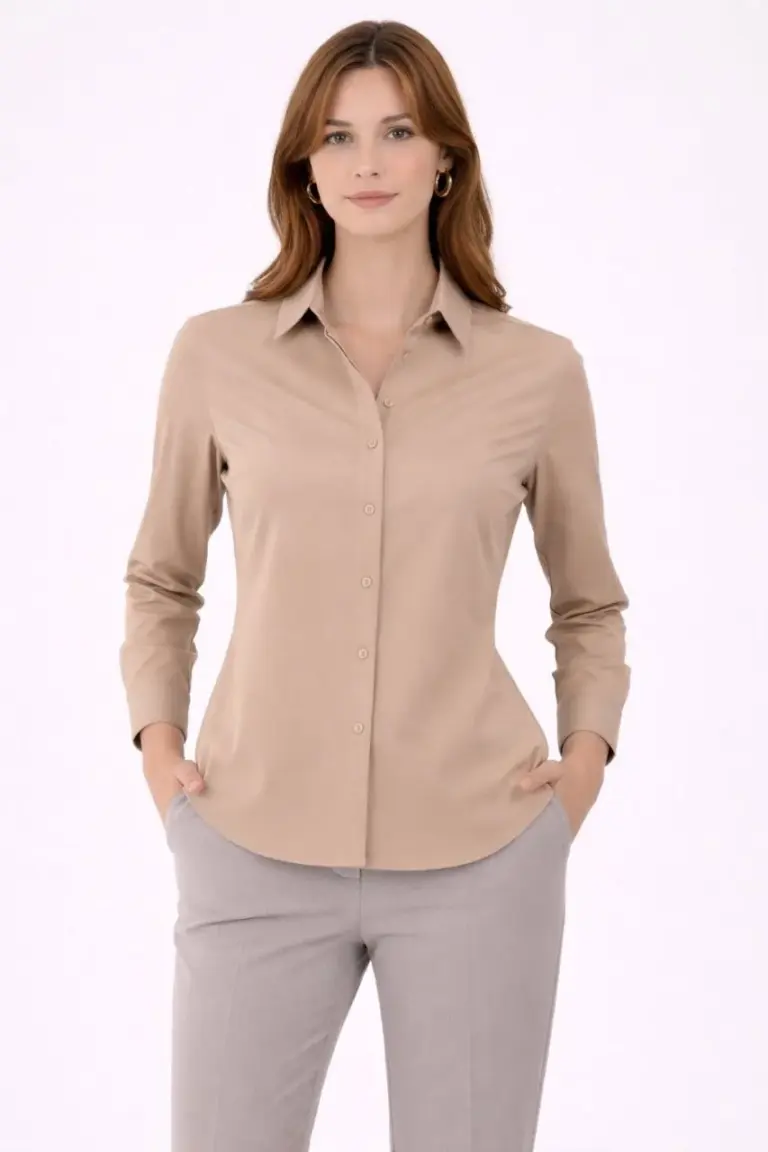 Uzun Kol Gömlek Düğmeli Klasik Yaka Günlük ve Ofis Şıklığına uygun – Bej