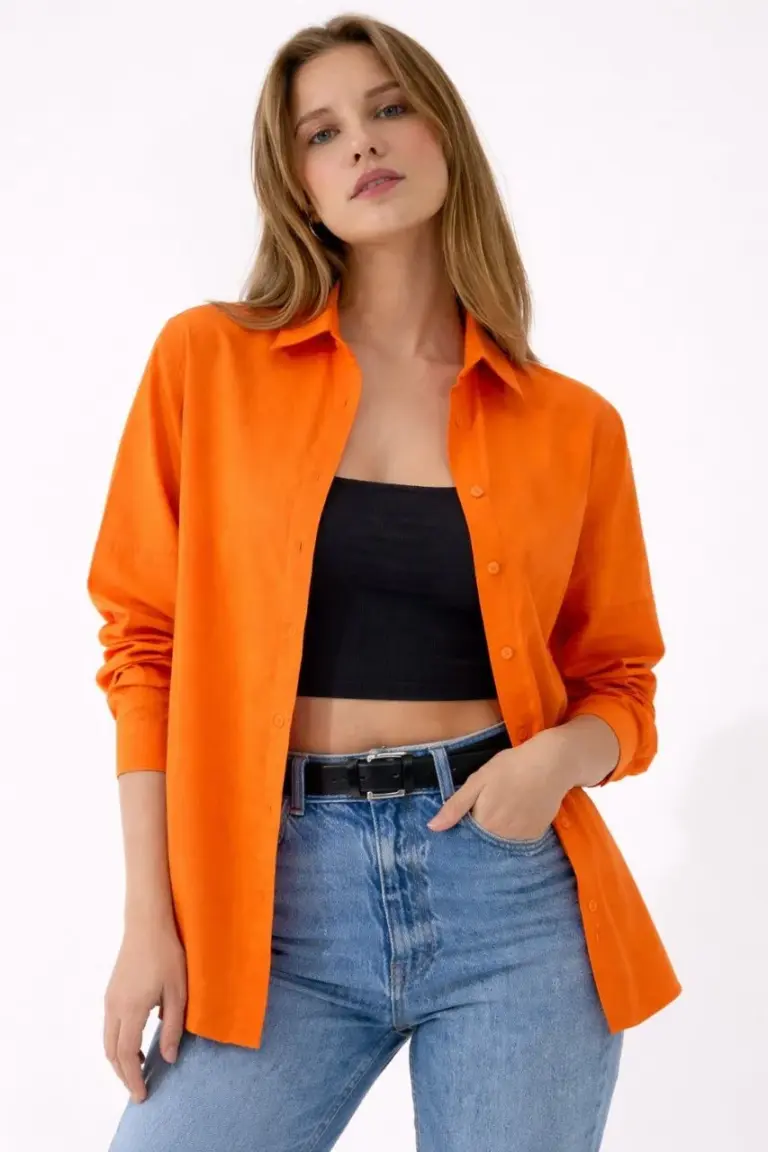 Uzun Kol Gömlek Düğmeli Klasik Yaka Günlük ve Ofis Şıklığına uygun – Turuncu