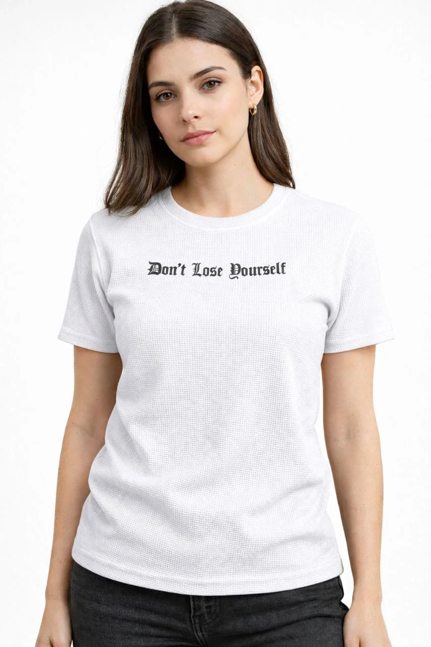 Wafıl Kumaş Tişört Regular Kalıp Bisiklet Yaka Baskılı T-Shirt – Beyaz