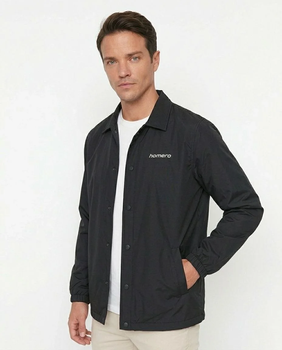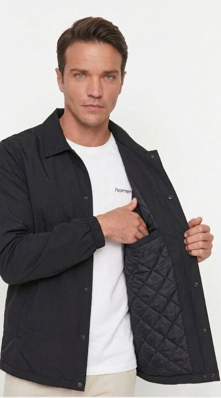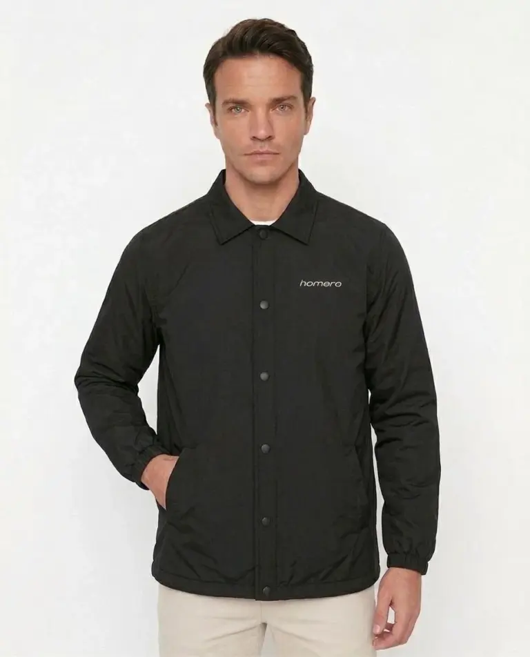 Yağmur İtici İç Astarlı Çıtçıtlı İç Cepli Dış Cepli Mevsimlik Ceket – Siyah