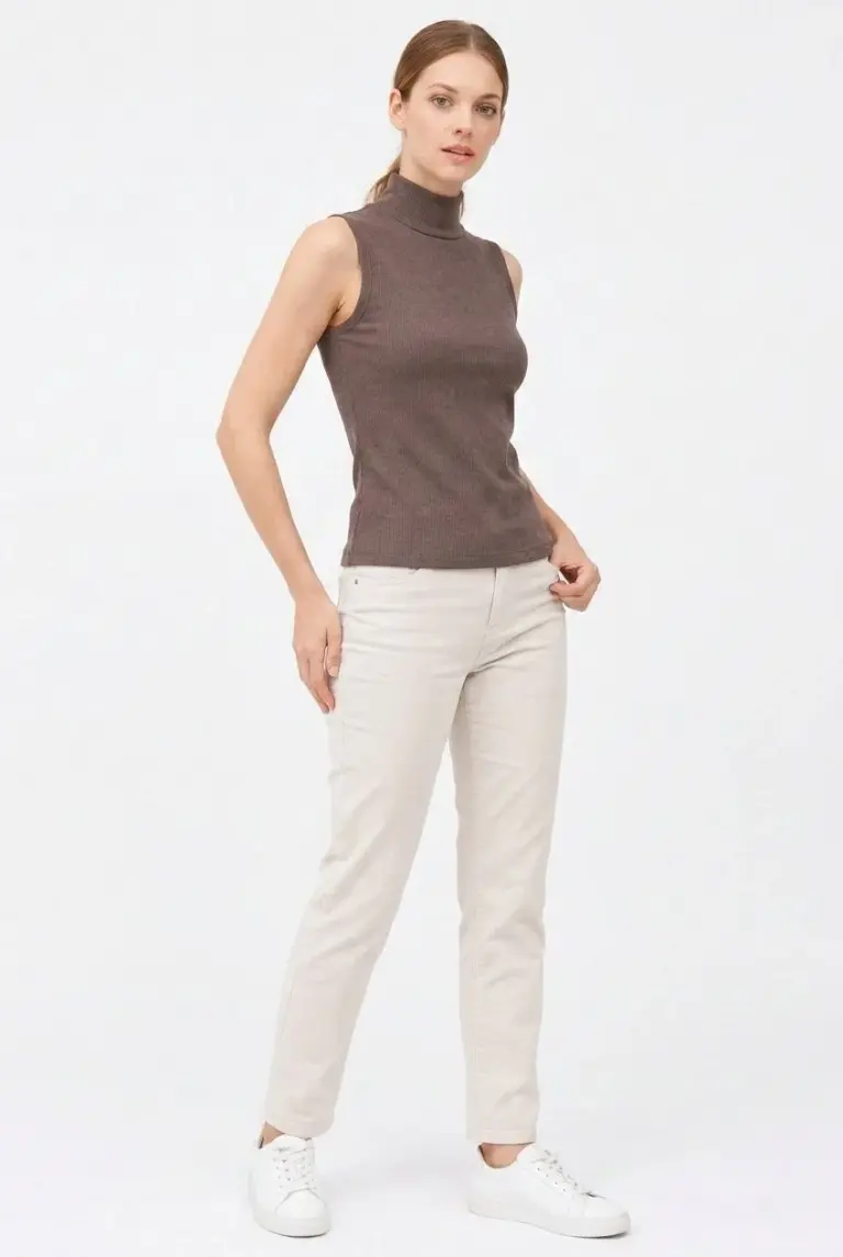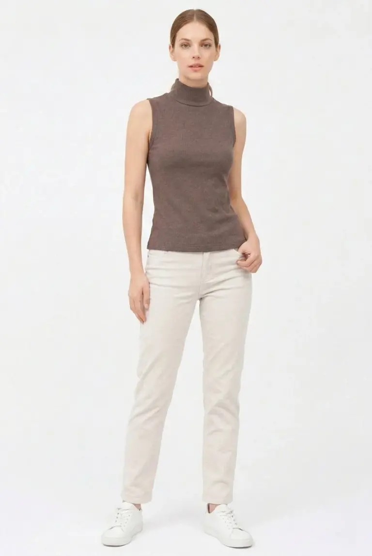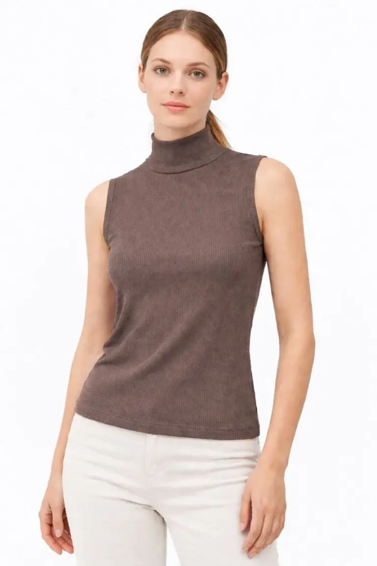 Yarım Balıkçı Yaka Fitilli Kaşkorse Atlet Şık Bluz Badi – Kahverengi