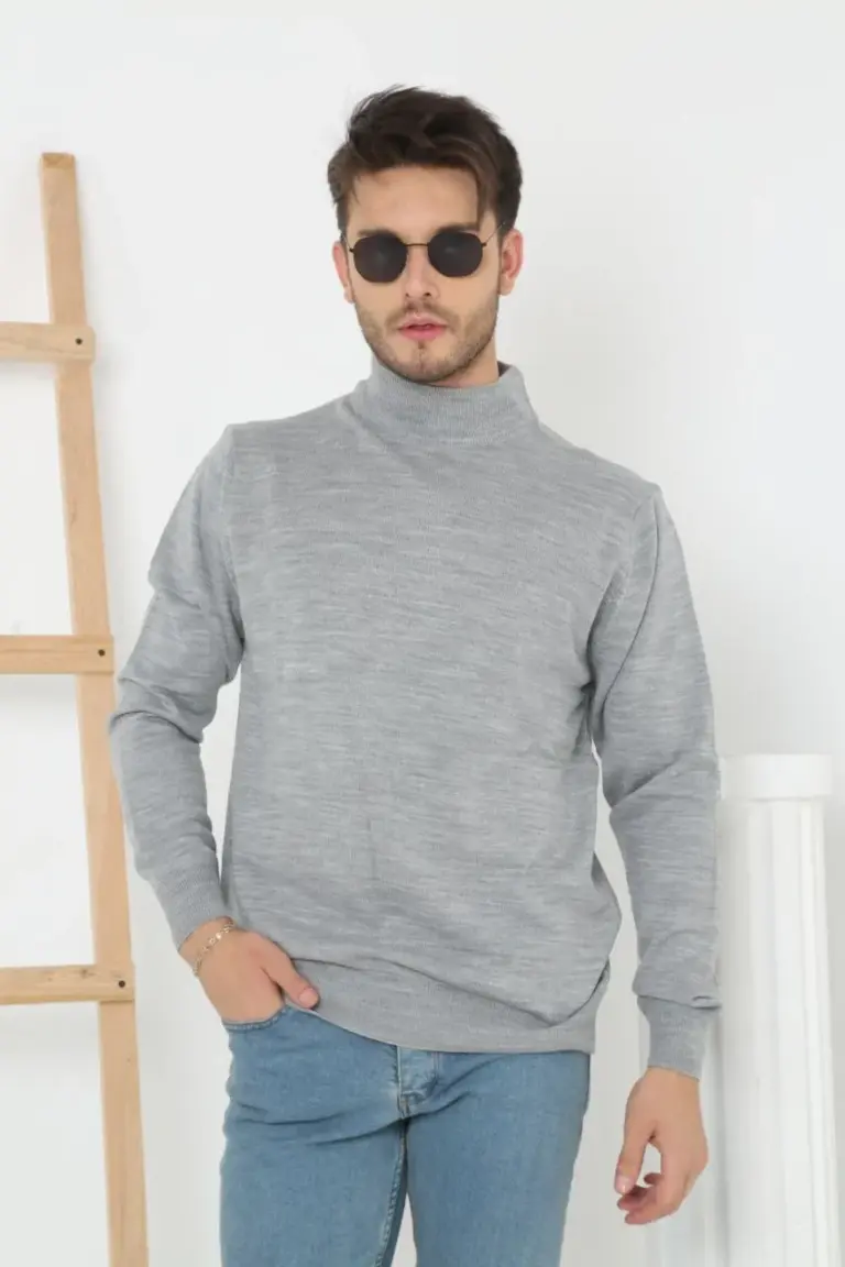 Yarım Boğaz Triko Yumuşak Dokulu Pamuklu Uzun Kollu Kazak – Gri