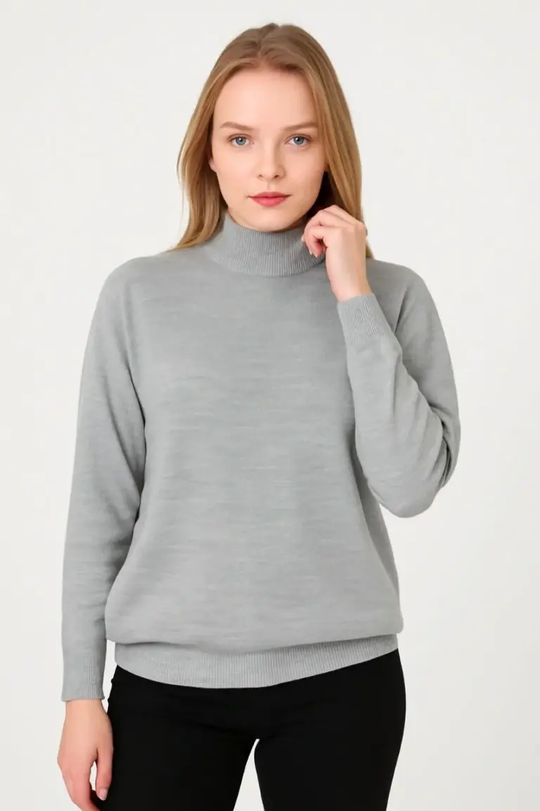 Yarım Boğaz Triko Yumuşak Dokulu Pamuklu Uzun Kollu Kazak – Gri