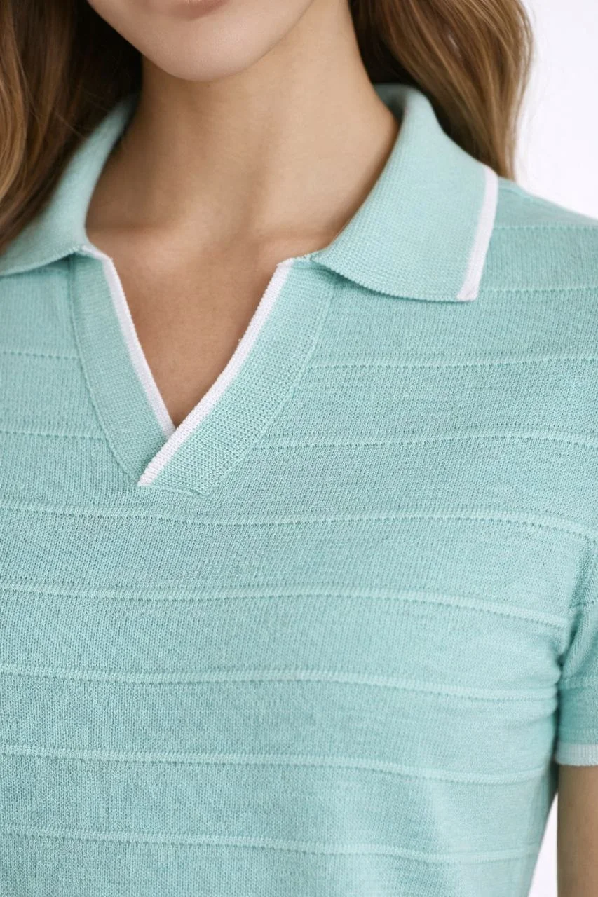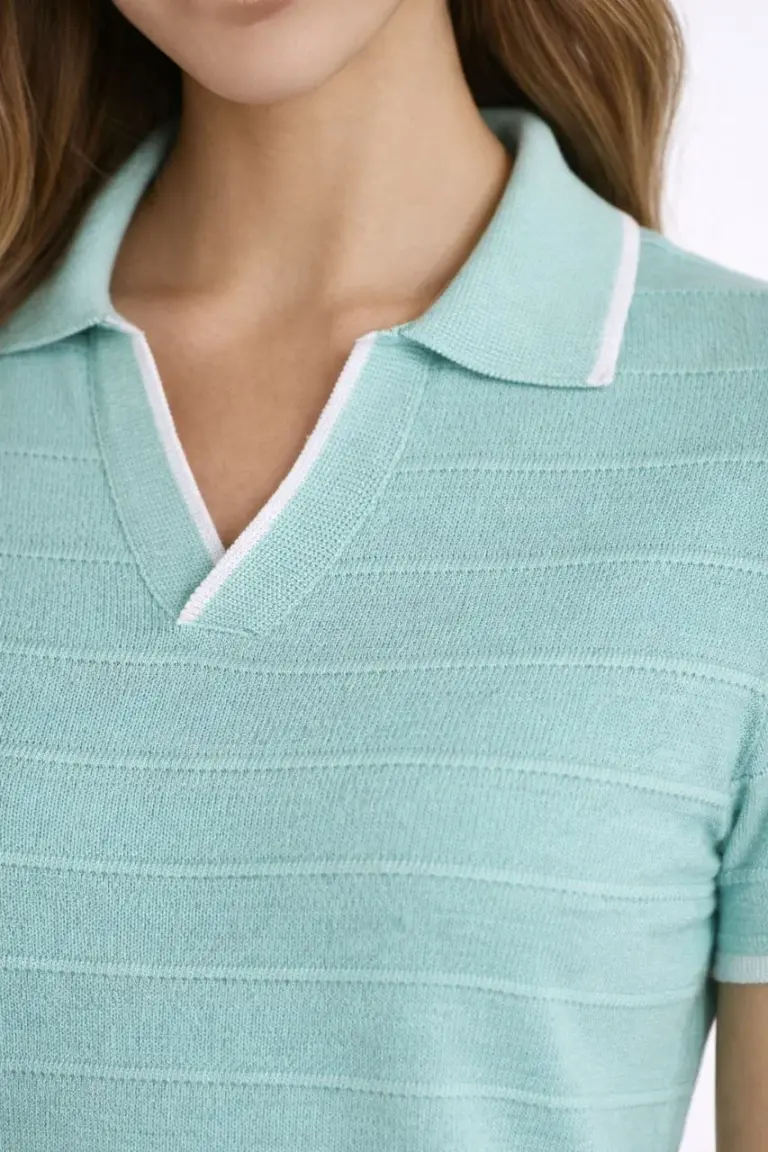 Yazlık Dokuma Triko Tişört Düğmesiz Polo Yaka Kısa Kol T