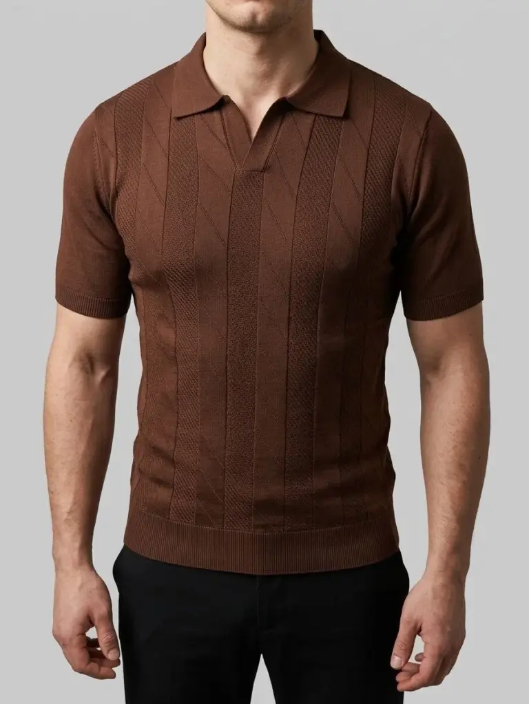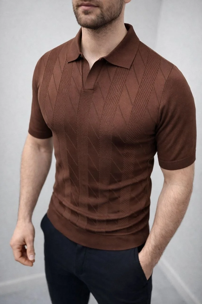 Yazlık Triko Dokuma Tişört Kısa Kol Polo Yaka T-Shirt – Kahverengi