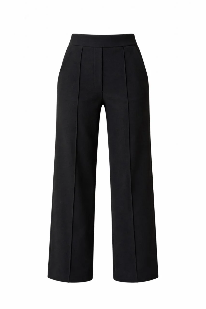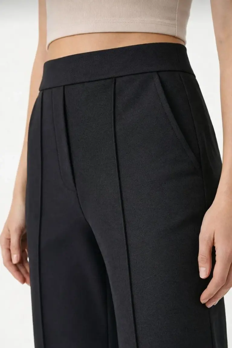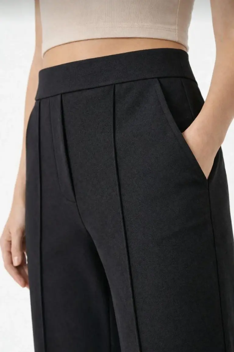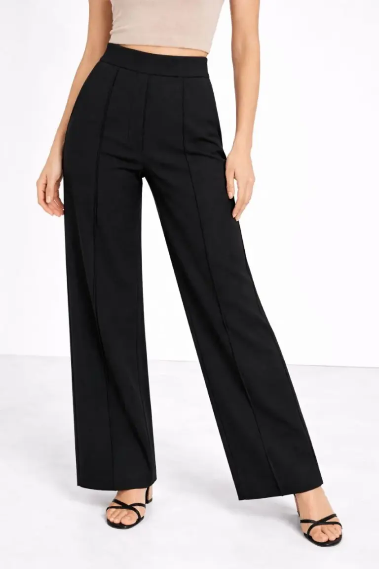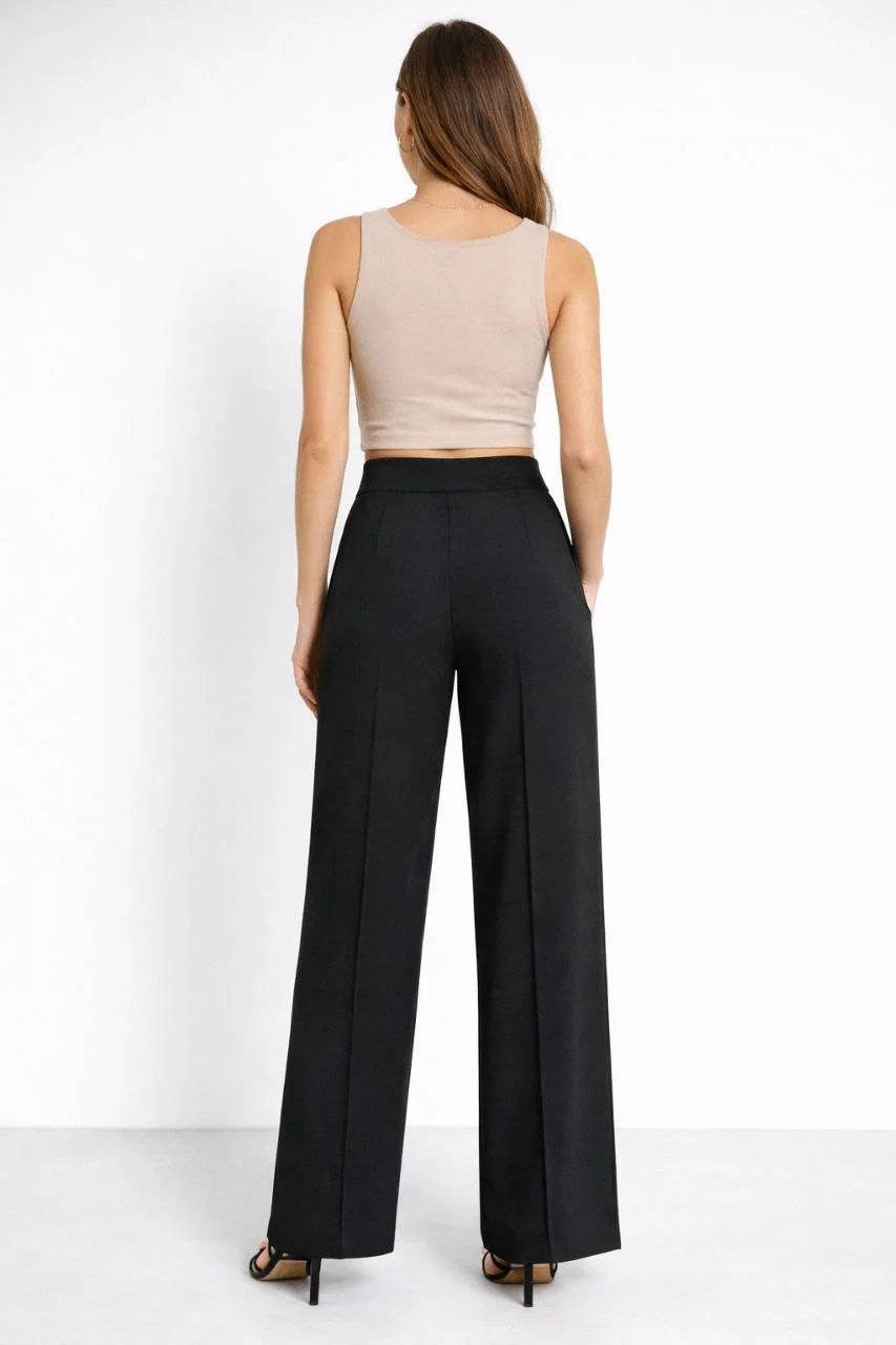 Yüksek Bel Palazzo Pantolon Çima Dikişli Bol Paça – Siyah