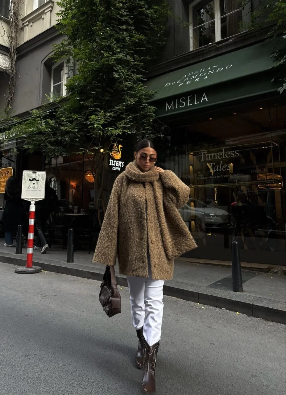 Yün Cıkartılabilen Atkılı , Kaban İkili Takım – Kahve